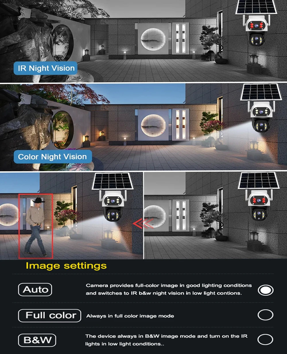 * Está equipado con luz blanca y luz infrarroja integradas, y cuenta con función de visión nocturna en color.