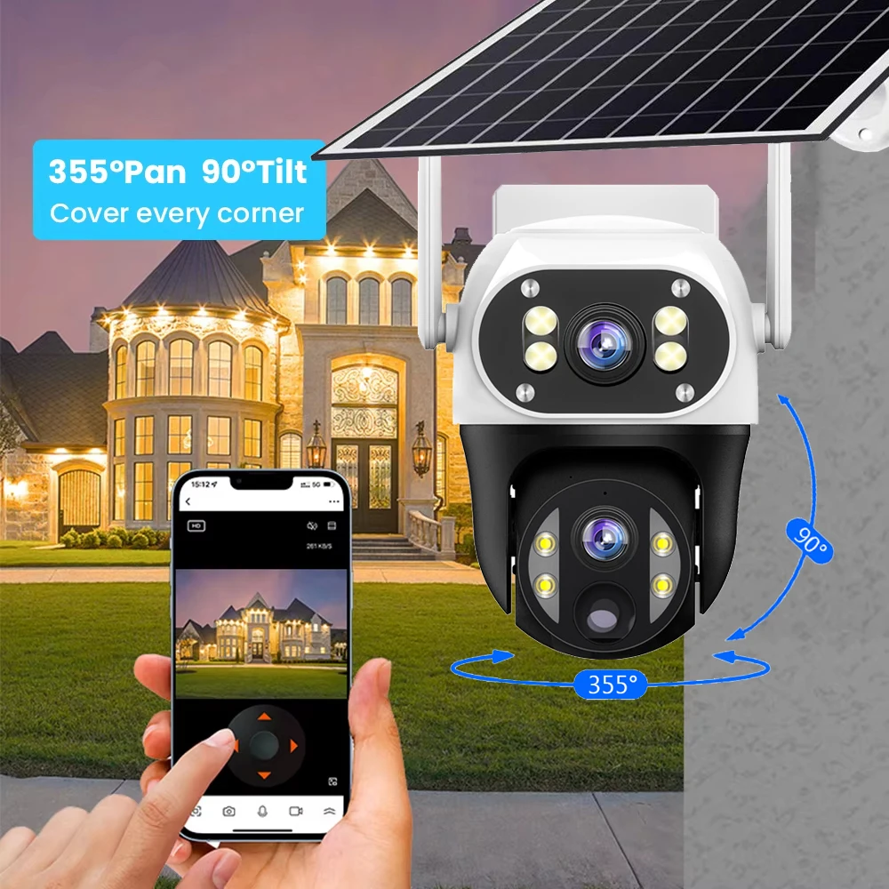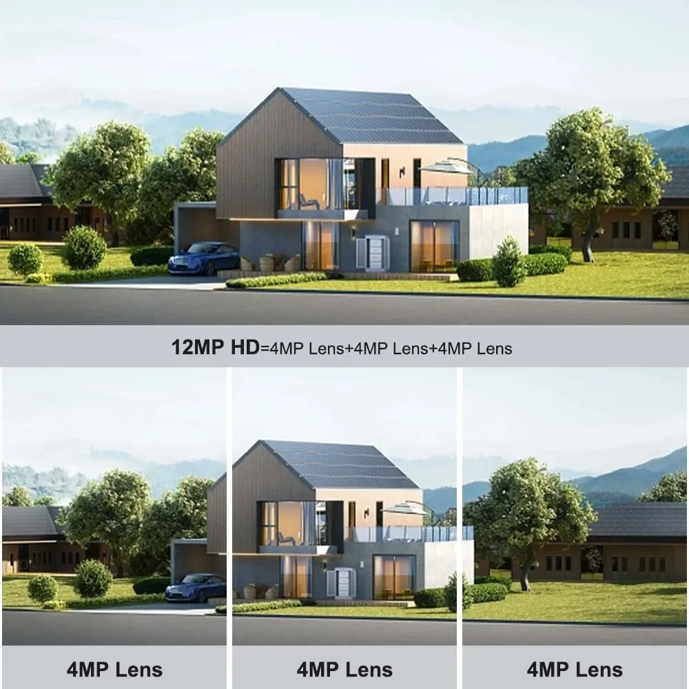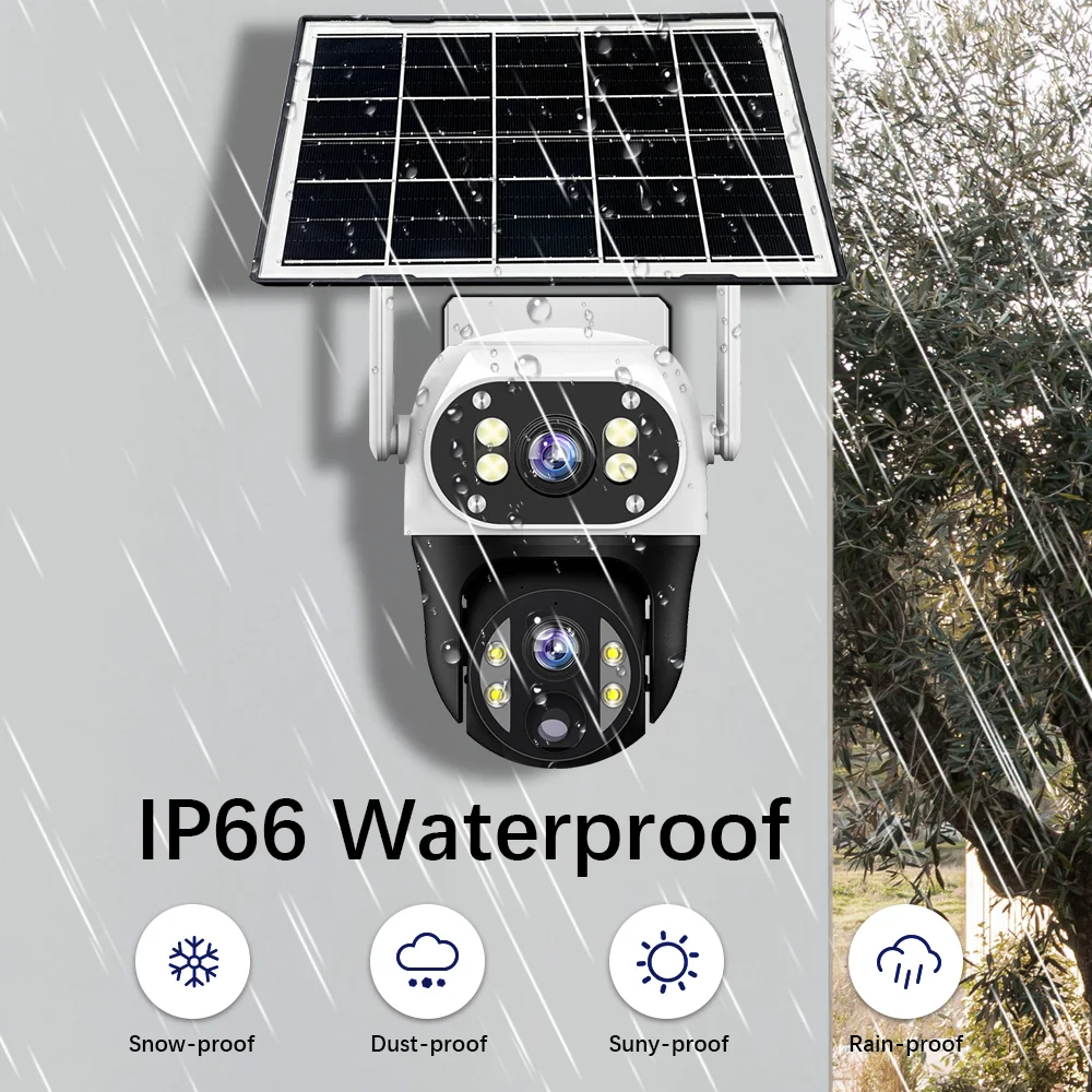 Cámara solar con tarjeta SIM 4G, lente dual de 12 MP, resistente al agua, para exteriores, CCTV, protección de seguridad V380 Pro, batería integrada.
