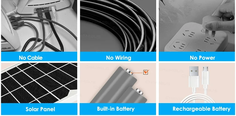 * Equipado con un panel solar de 5 W + batería de 8000 mAh + cable de alimentación extendido de 1,8 m