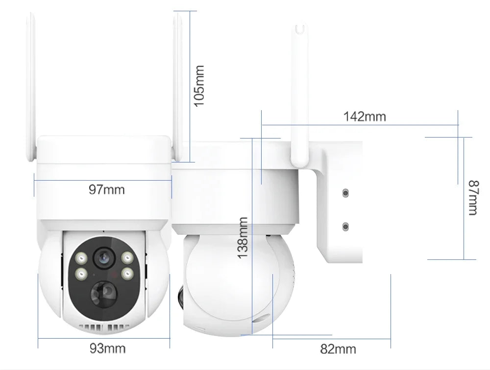 Puedes controlar fácilmente la cámara PT para que gire 355° horizontalmente y 90° verticalmente y cubra todos los ángulos de tu casa. Con solo un teléfono móvil, puedes monitorear remotamente toda la entrada o tu tienda a través de esta cámara WiFi.