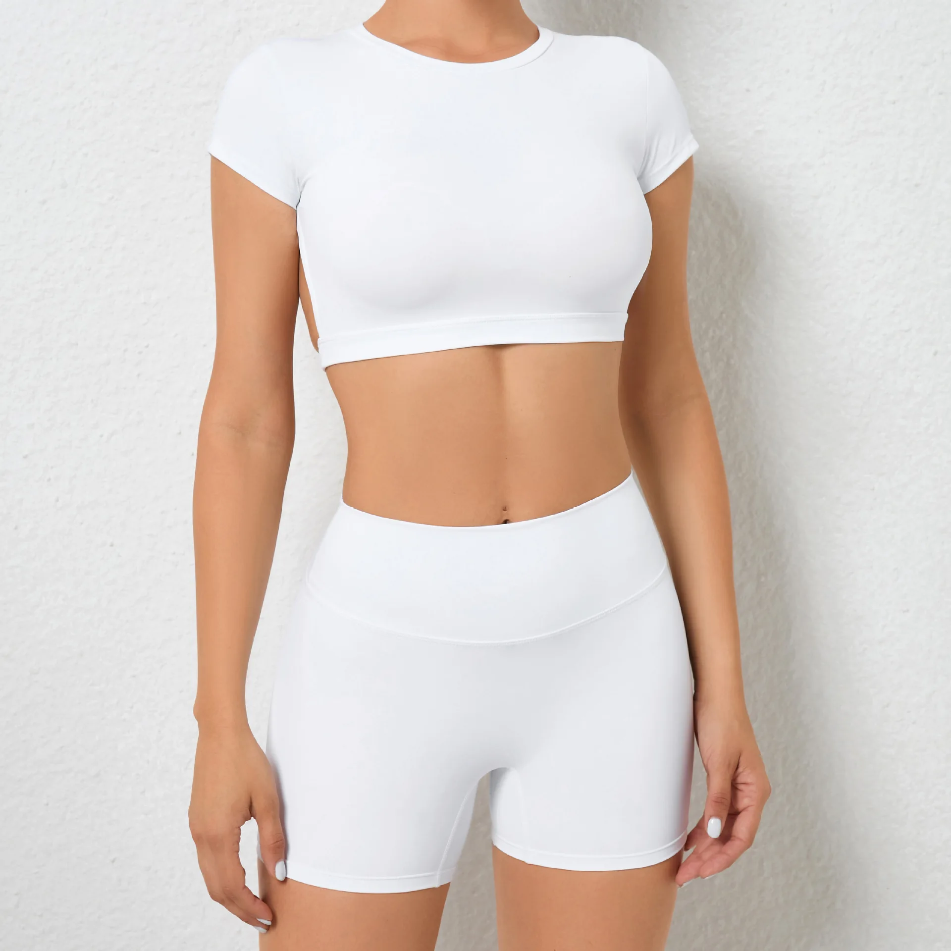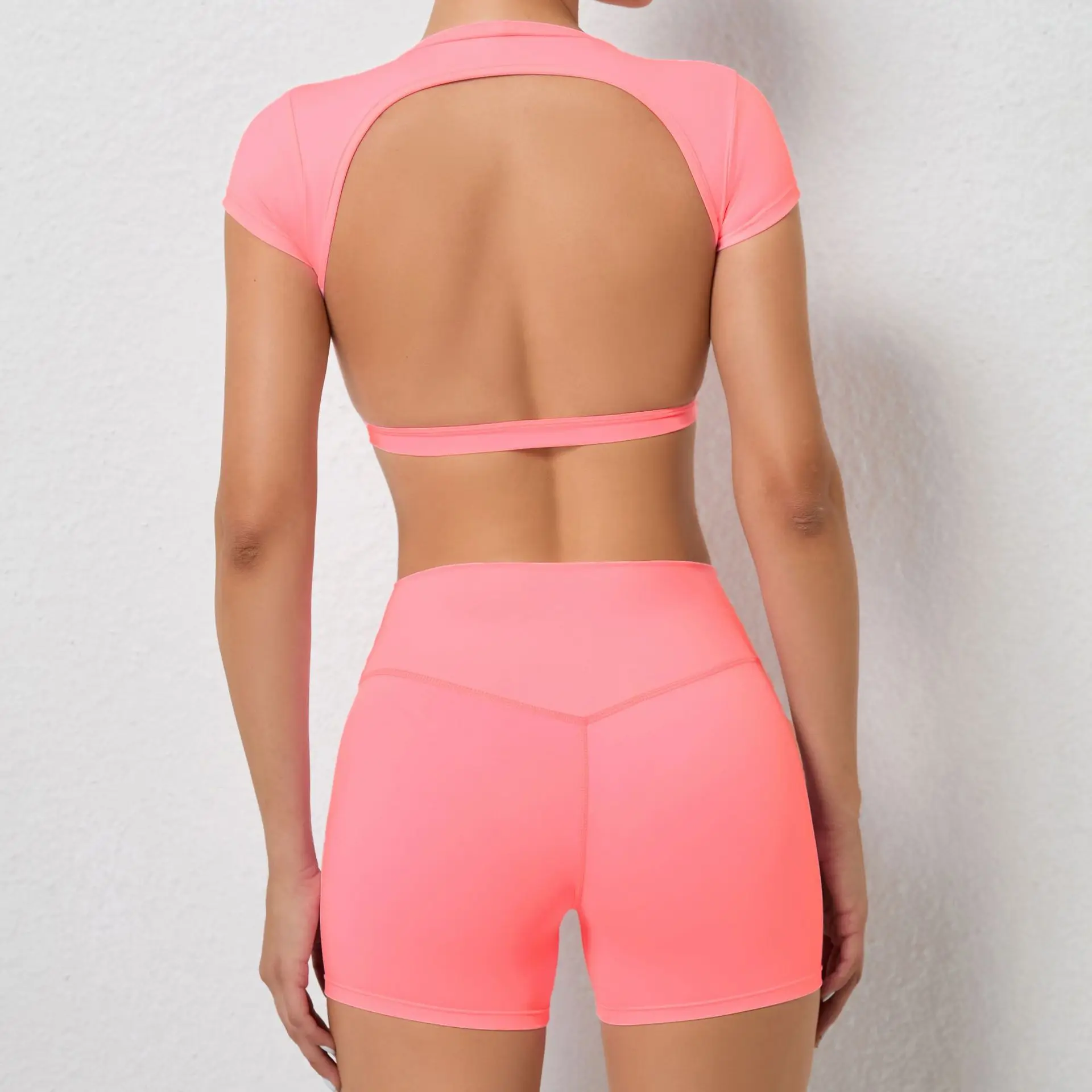 Sports Set Workout Fitness Activewear Set Female Quick-Dry Yoga Clothes Crop Sports Shirts Tops Backless Gym Top Women Sport Set