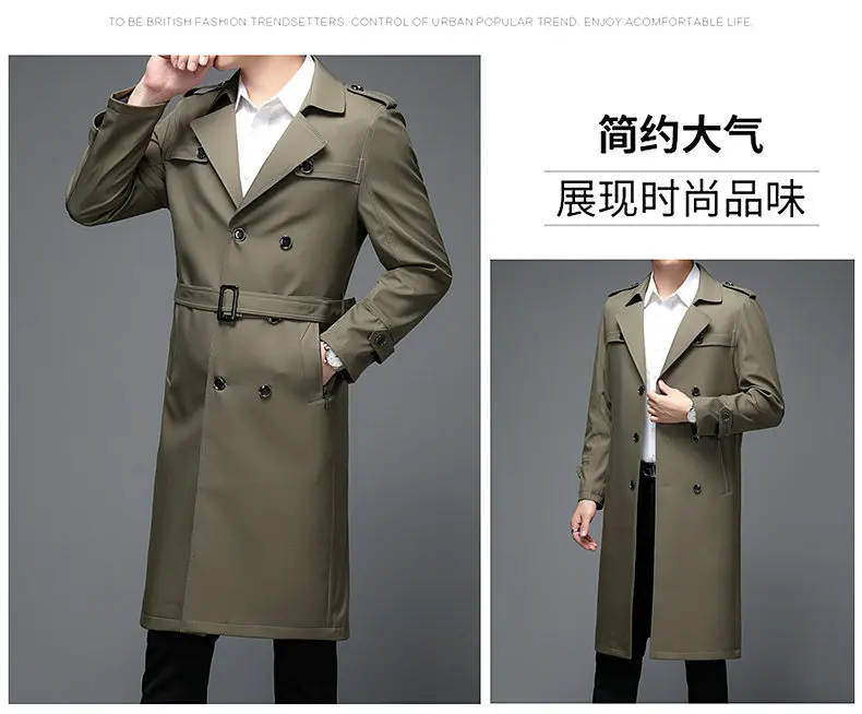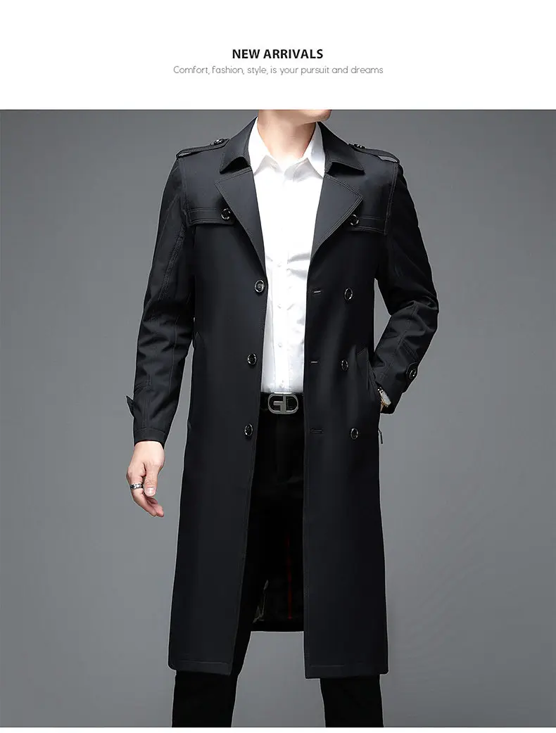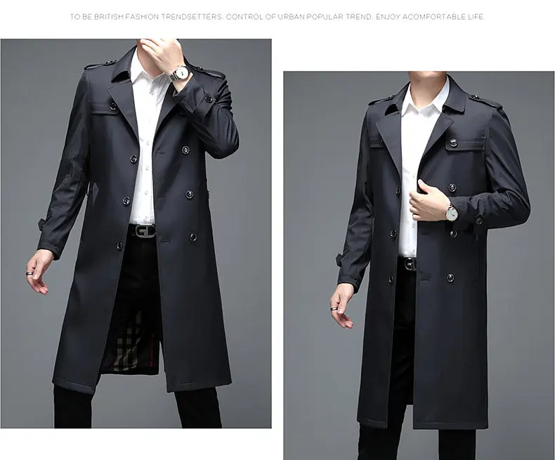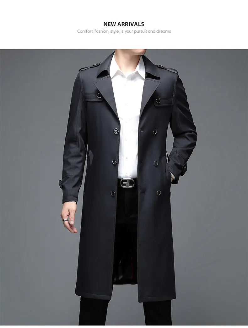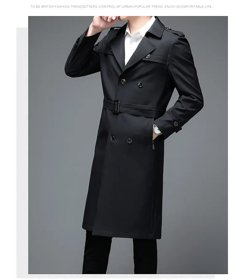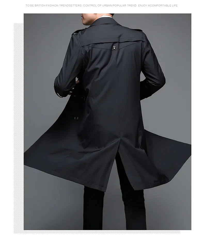 Spring Autumn Streetwear Fashion Trench Coat Men's Designer Overlong British Coats Man's Clothing With Epaulets Men's Jackets