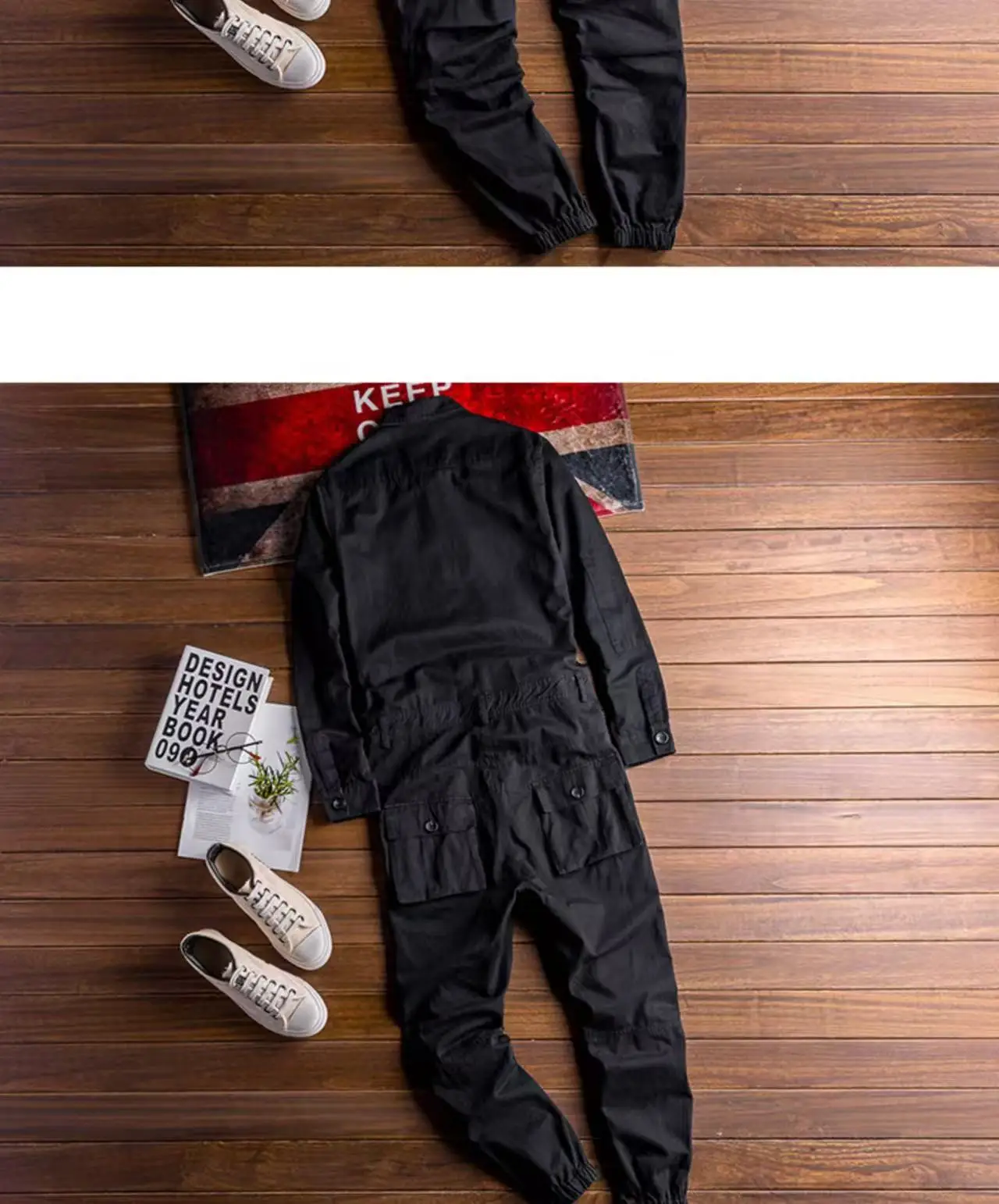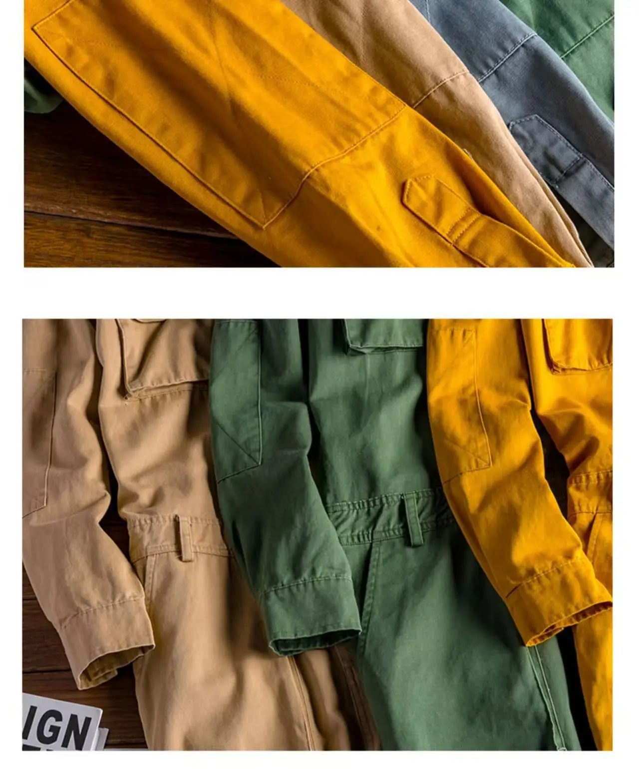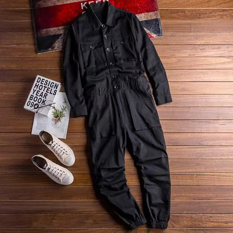 Spring Overalls Men's Jumpsuit Loose Long Sleeve Cotton Cargo Pants Black Yellow Workwear Trousers Working Uniform Rompers