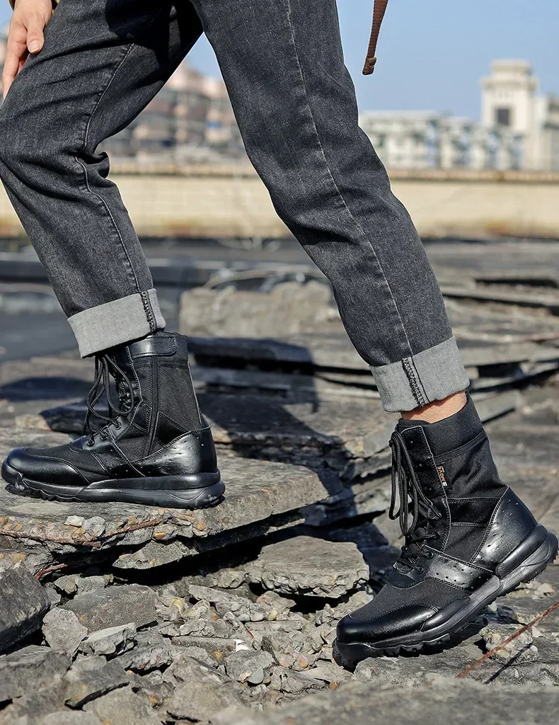 Side Zipper Military Outdoor Combat Tactical Boots Men Women Lightweight Summer Mesh Breathable Hiking Climbing Shoes 35-48 Size