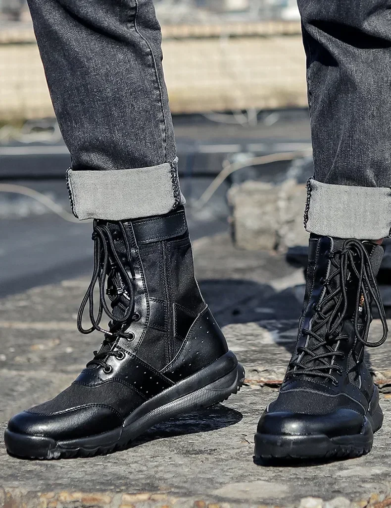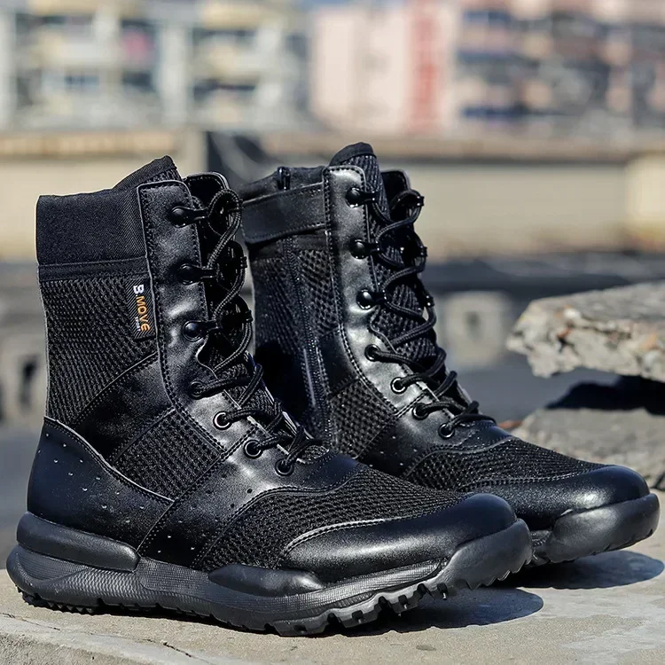 Side Zipper Military Outdoor Combat Tactical Boots Men Women Lightweight Summer Mesh Breathable Hiking Climbing Shoes 35-48 Size