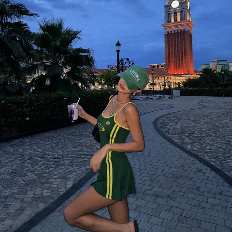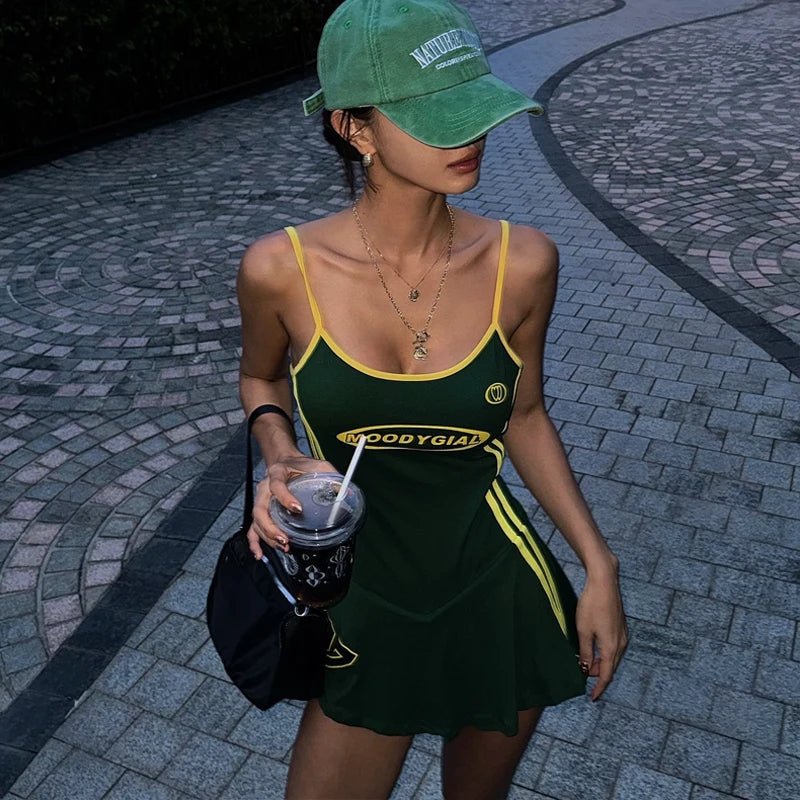 Vestido de verano sexy, estilo europeo y americano, para mujer, sin mangas, mini, ajustado, con falda de tirantes baja, estilo Y2K, ideal para la playa.