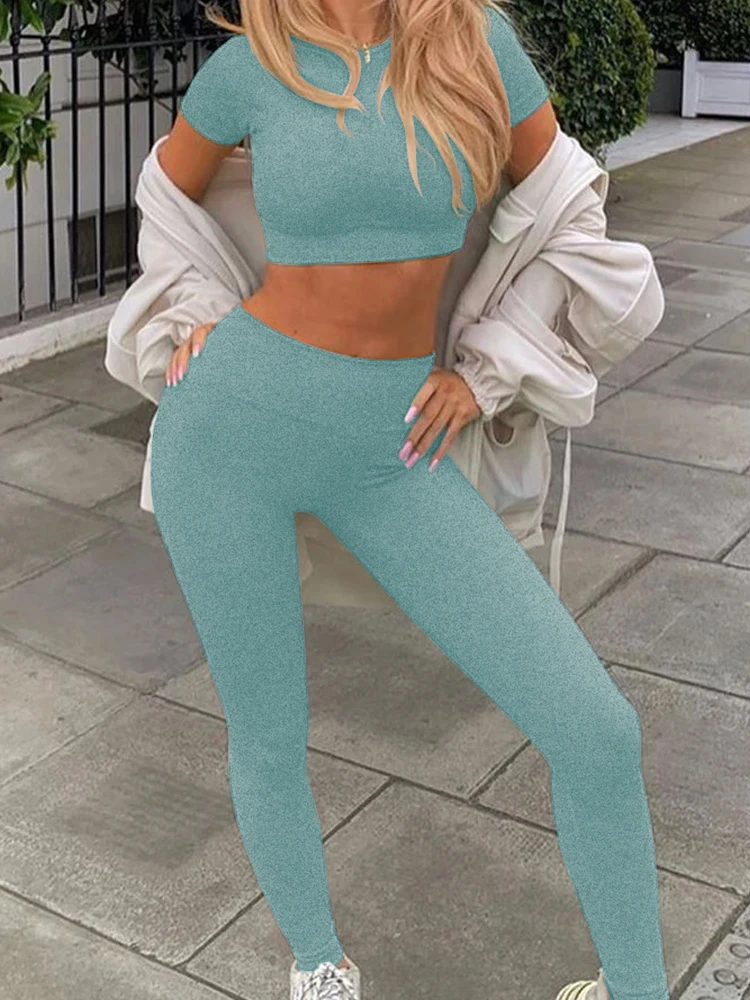 Conjunto de yoga de verano para mujer, cuello redondo, cintura alta, levantamiento de cadera, ajustado, moldeador, conjunto deportivo de dos piezas para fitness