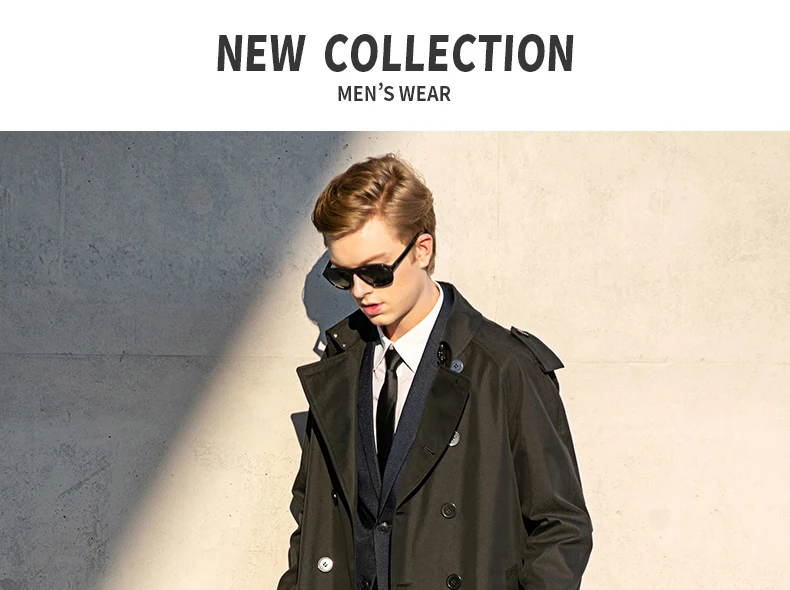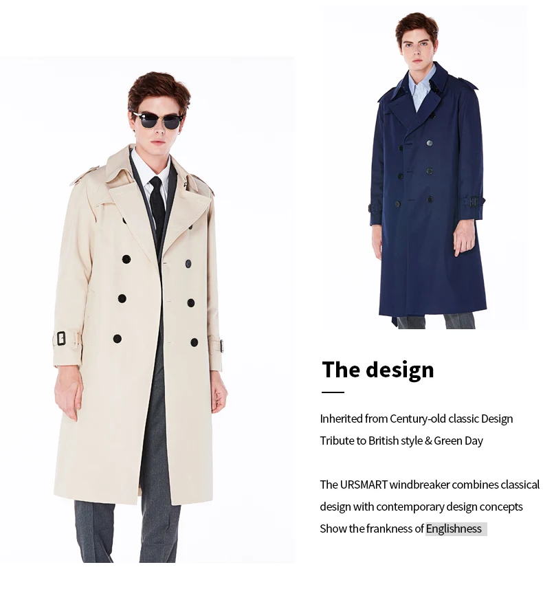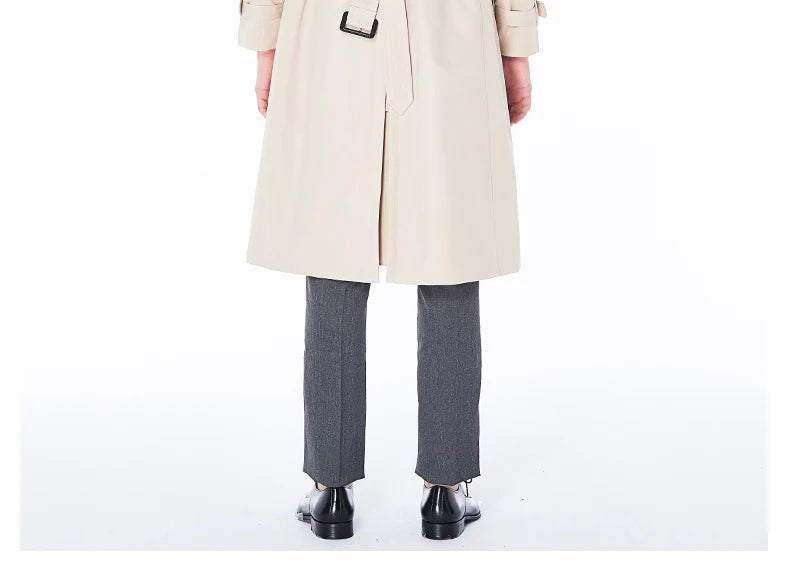 Super long windbreaker down liner weatherproof men's trench coat British trend black trench coat men's casual coat