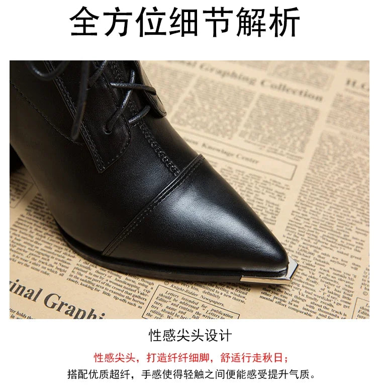 Botines de tacón alto con punta puntiaguda para mujer, botas sencillas de tacón de bloque para otoño e invierno de 2025.