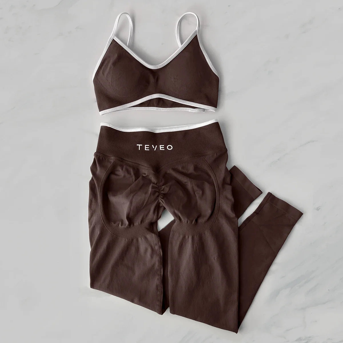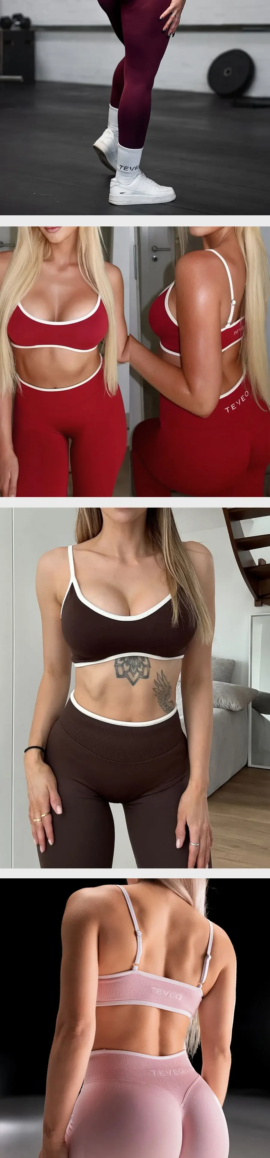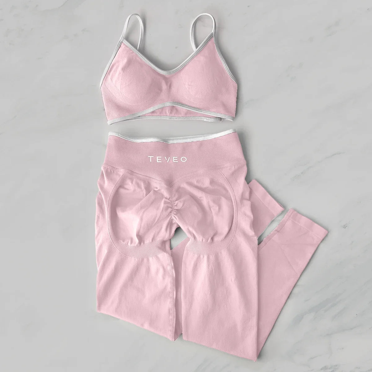 TEVEO 2 Pièces Ensemble De Sport Femme Leggings Vêtements D'Entraînement Ensemble De Soutien-gorge Sans Couture Scrunch Legging