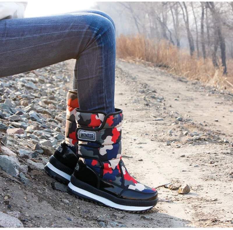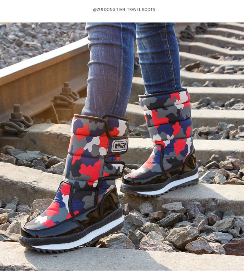 Botas de nieve gruesas, antideslizantes, cálidas, de terciopelo, para hombre y mujer, de algodón, para invierno.