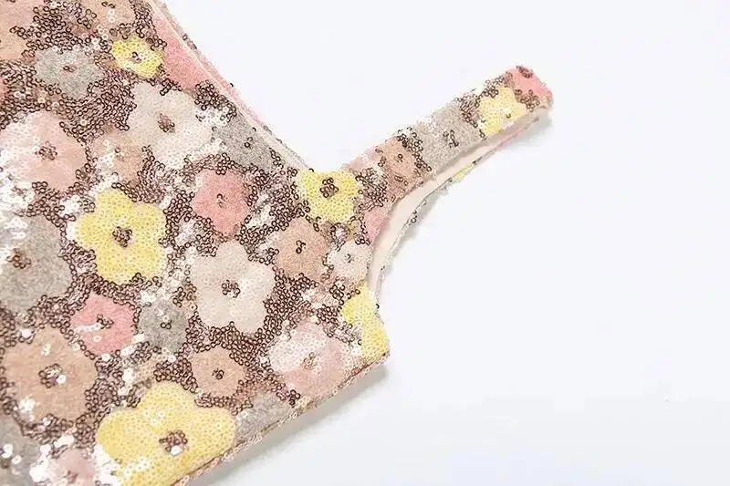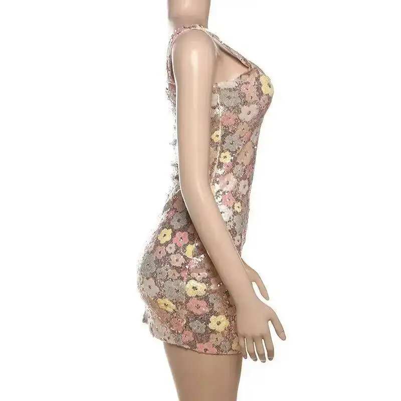 Vestido de fiesta sexy para mujer, estilo discoteca, con lentejuelas florales, tipo pueblo, tirantes finos, mini, primavera/verano 2025, vestido ajustado y entallado.