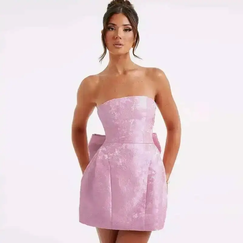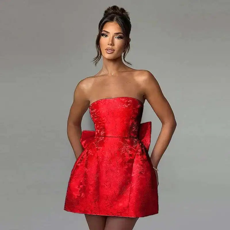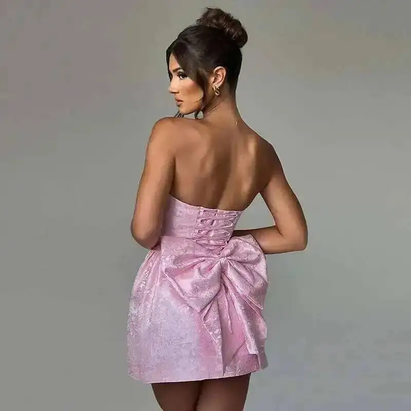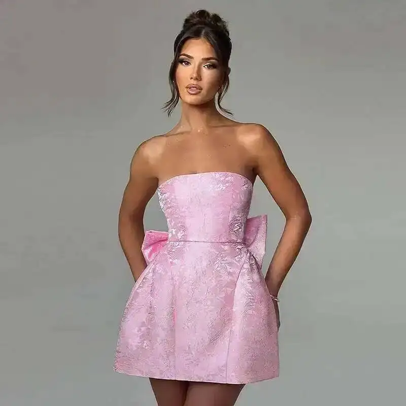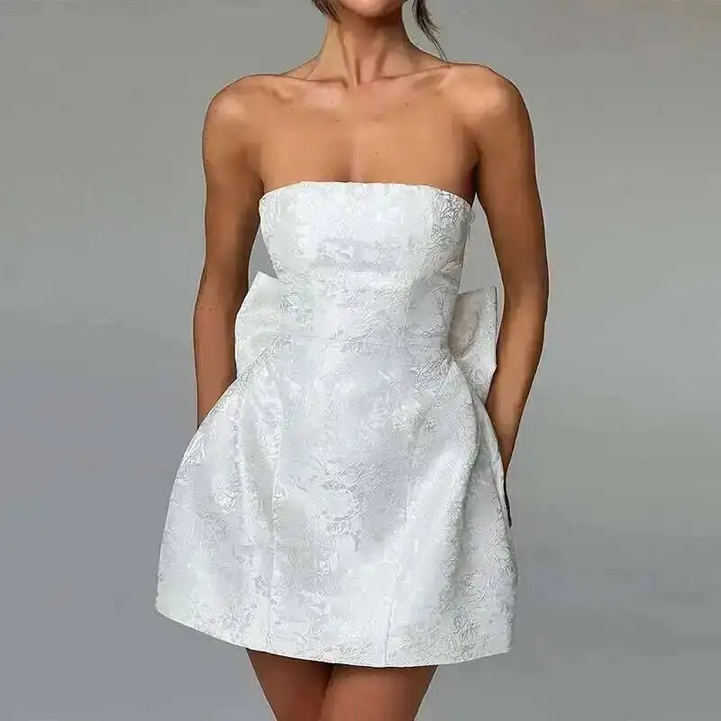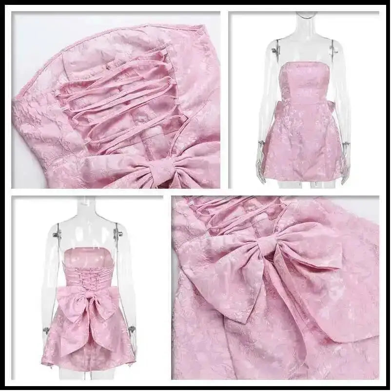 Townlike Jacquard Waist Wrap A-line Dress Women Mini 2024 Spring Summer Dress Elegant Bow Backless Sexy Party Dresses