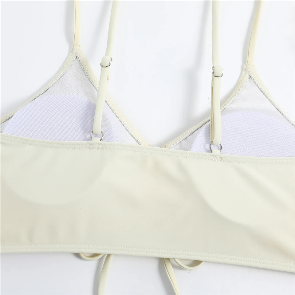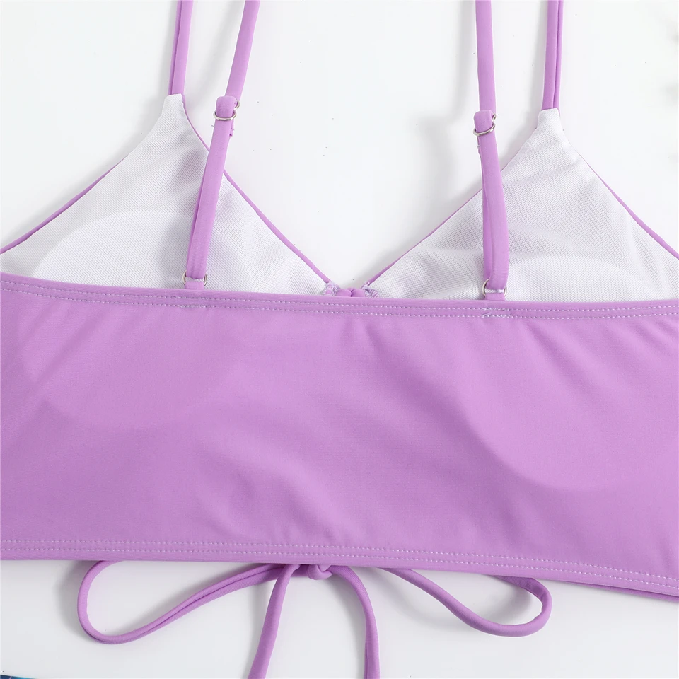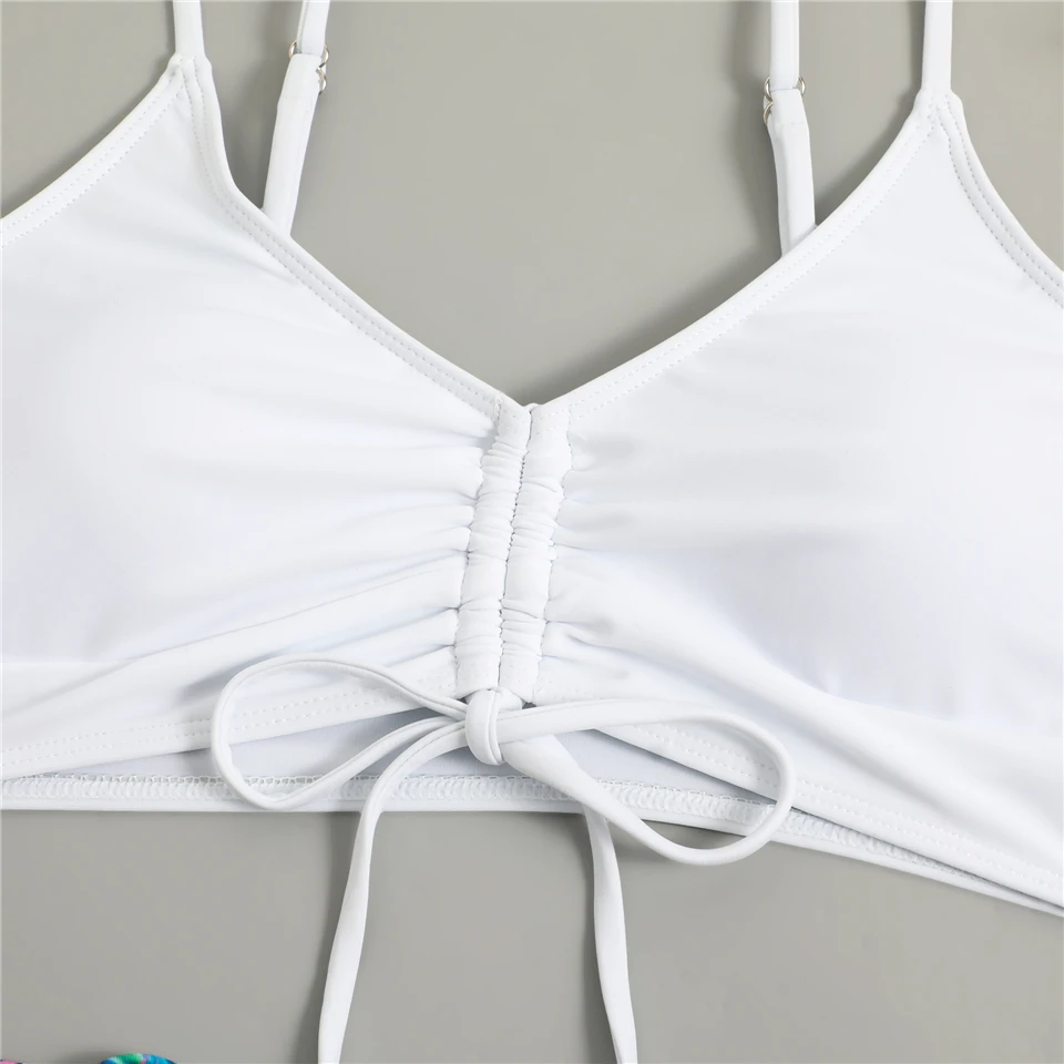 Número de modelo : Bikini con cordón y estampado tropical para mujer, traje de baño de cintura alta