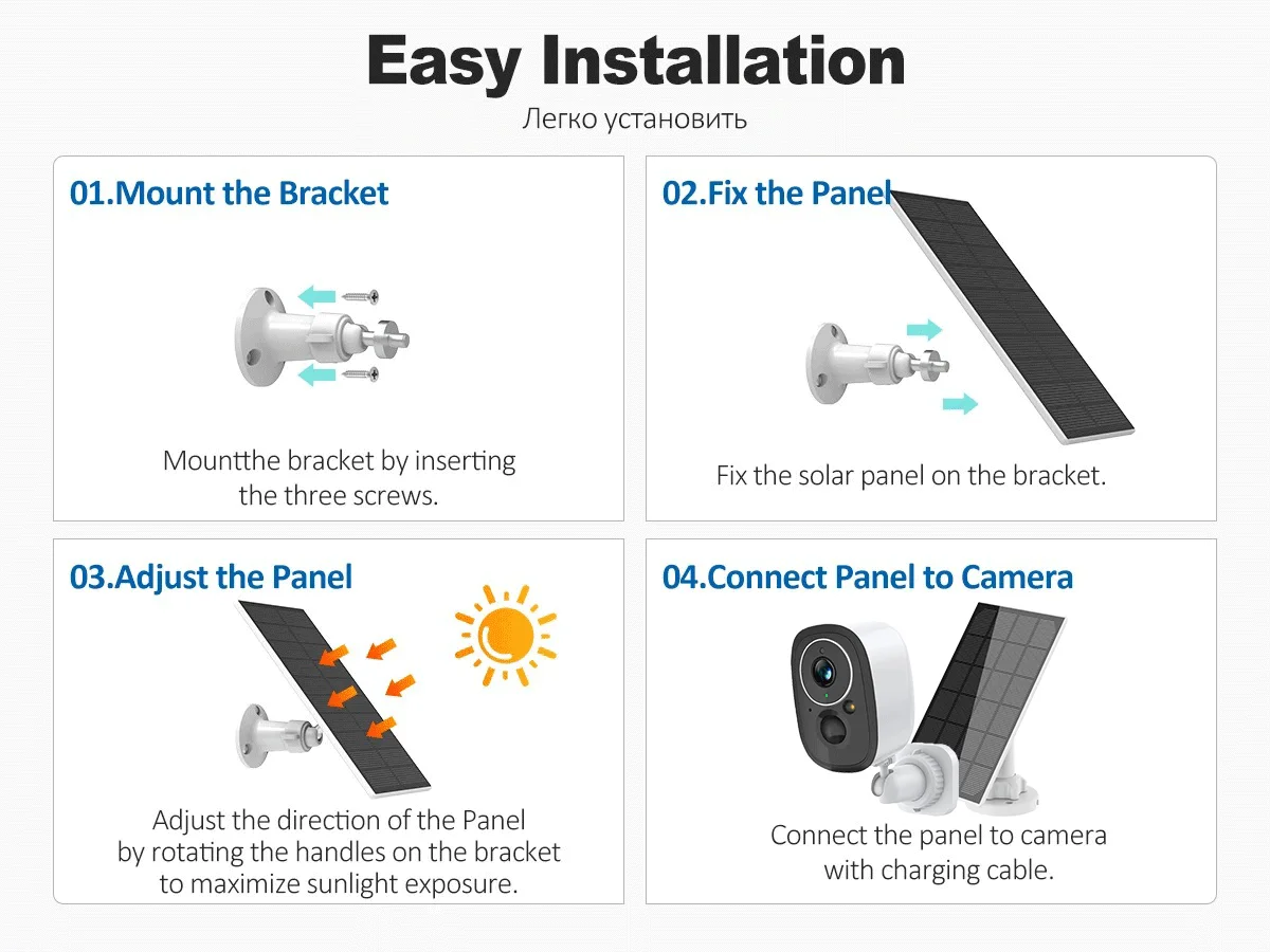 La cámara cuenta con una batería recargable integrada de 5200 mAh (no reemplazable) que se puede cargar directamente mediante un panel solar. Ofrece hasta 90 días de funcionamiento con una sola carga (10 disparos al día), lo que resulta práctico y permite ahorrar mucho dinero.
