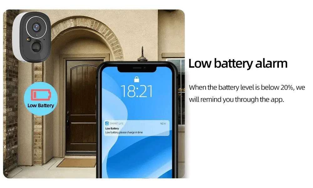 Puedes configurar el umbral de alarma de batería baja entre el 10 % y el 50 %. Si lo configuras en el 20 %, cuando la batería alcance ese nivel, recibirás una notificación de alerta a través de la aplicación para recordarte que debes cargar la cámara Tuya.