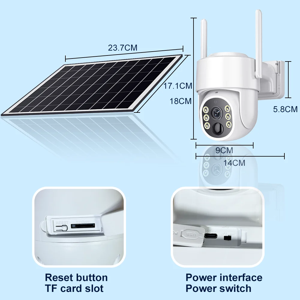 3. Si la cámara de bajo consumo se instala en exteriores, se puede utilizar con un panel solar, por lo que no tendrá que preocuparse por cargar la batería.