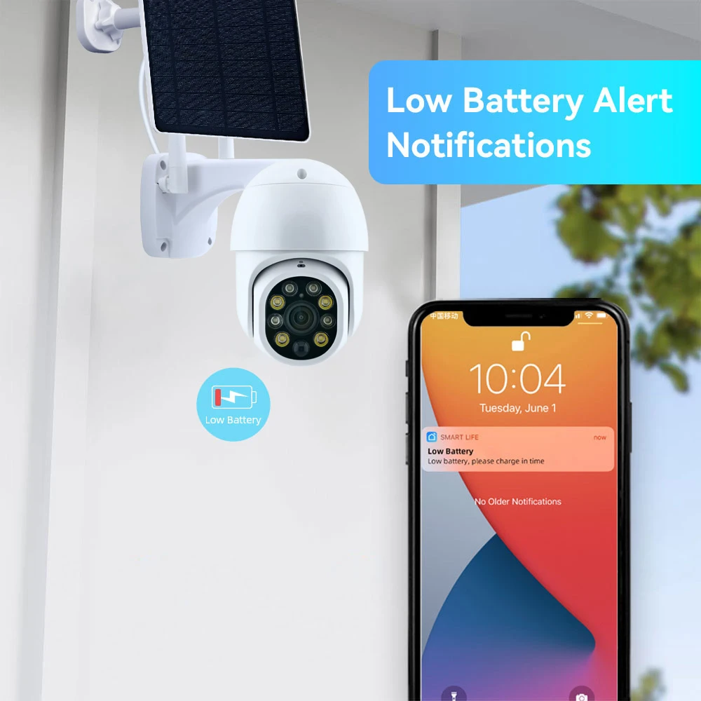 Características de la cámara PTZ WiFi solar con batería y seguimiento de movimiento Tuya