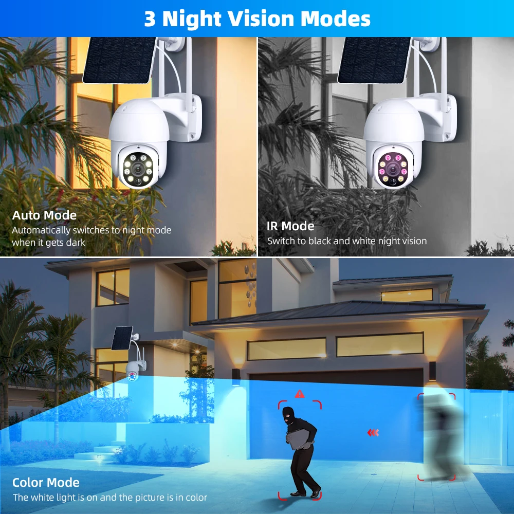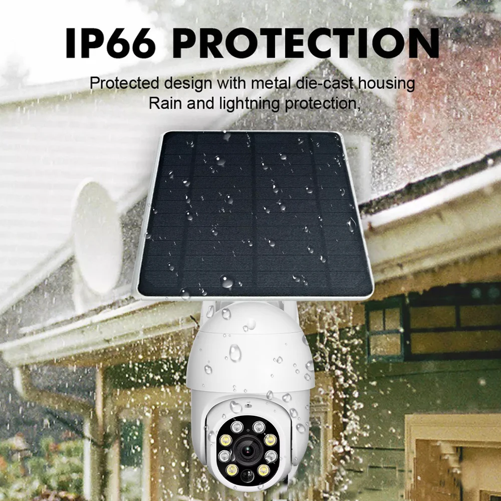 • Cámara IP WiFi de 3 MP para exteriores con batería, energía solar y WiFi de 2,4 GHz