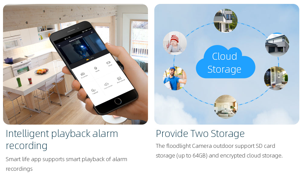• Admite tarjetas TF de hasta 256 GB (no incluidas) o almacenamiento en la nube que requiere suscripción.