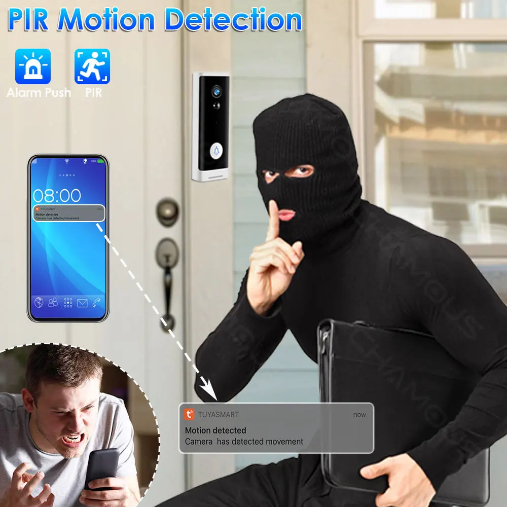 Timbre inteligente WiFi Tuya para el hogar, videoportero inalámbrico WiFi con intercomunicador y cámara de seguridad exterior 1080P HD para el hogar con sensor PIR.