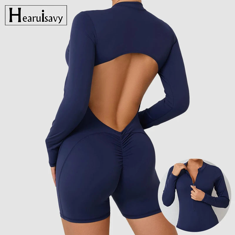 V Back Scrunch One-Piece Suit Push Up Sports Jumpsuit Woman Fitness Zipper Overalls Workout Rompers Women Gym Bodysuits Female