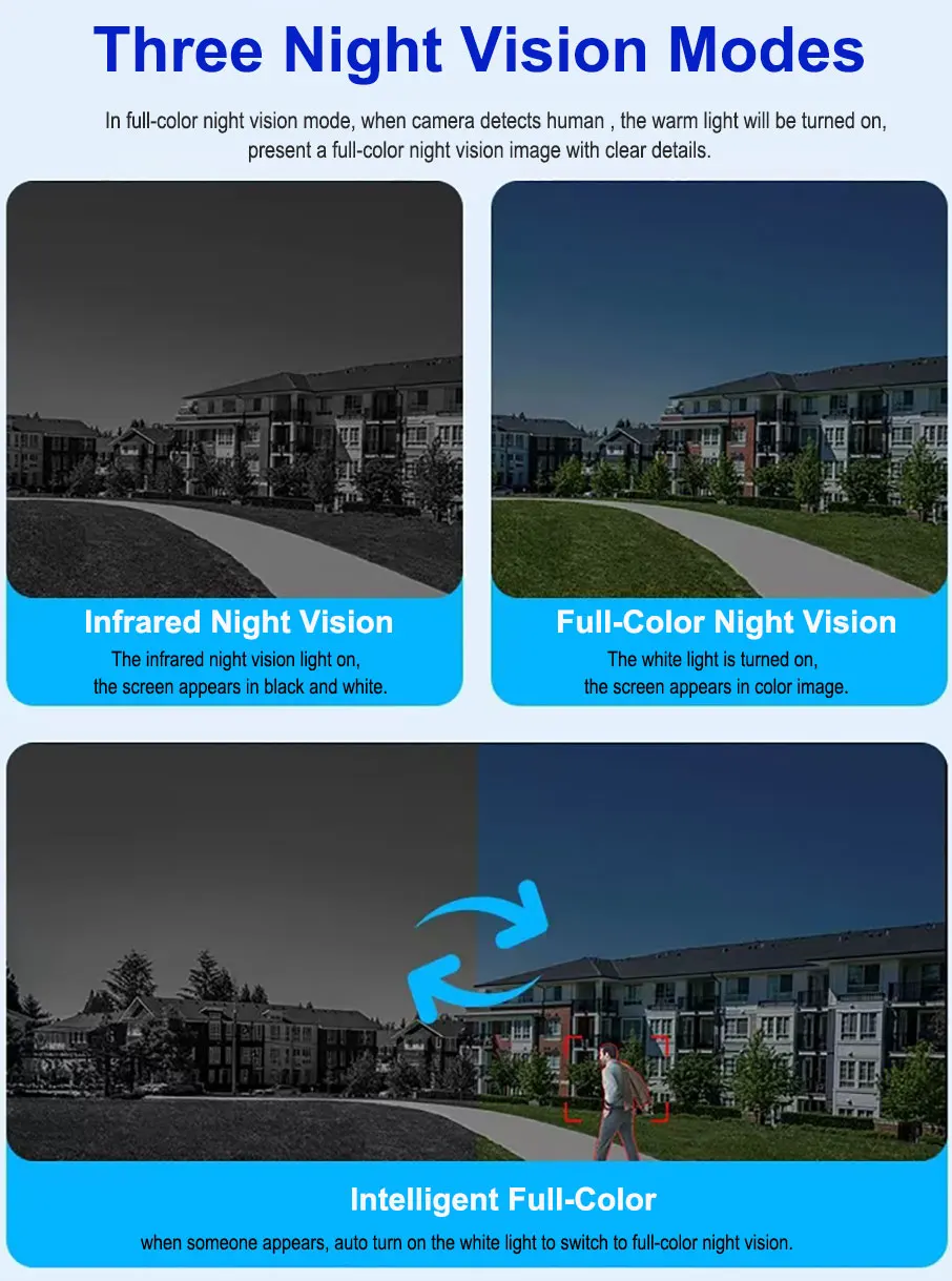 Lente de 10,4 mm + 4 mm + 4 mm, zoom digital 10X, luz infrarroja y luz blanca integradas.
