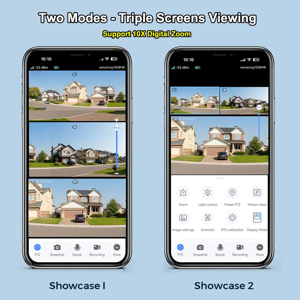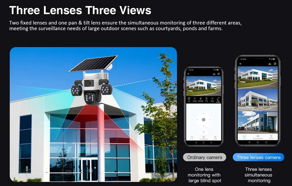 La triple lente puede monitorizar simultáneamente diferentes áreas sin puntos ciegos, proporcionando una experiencia visual maravillosa.