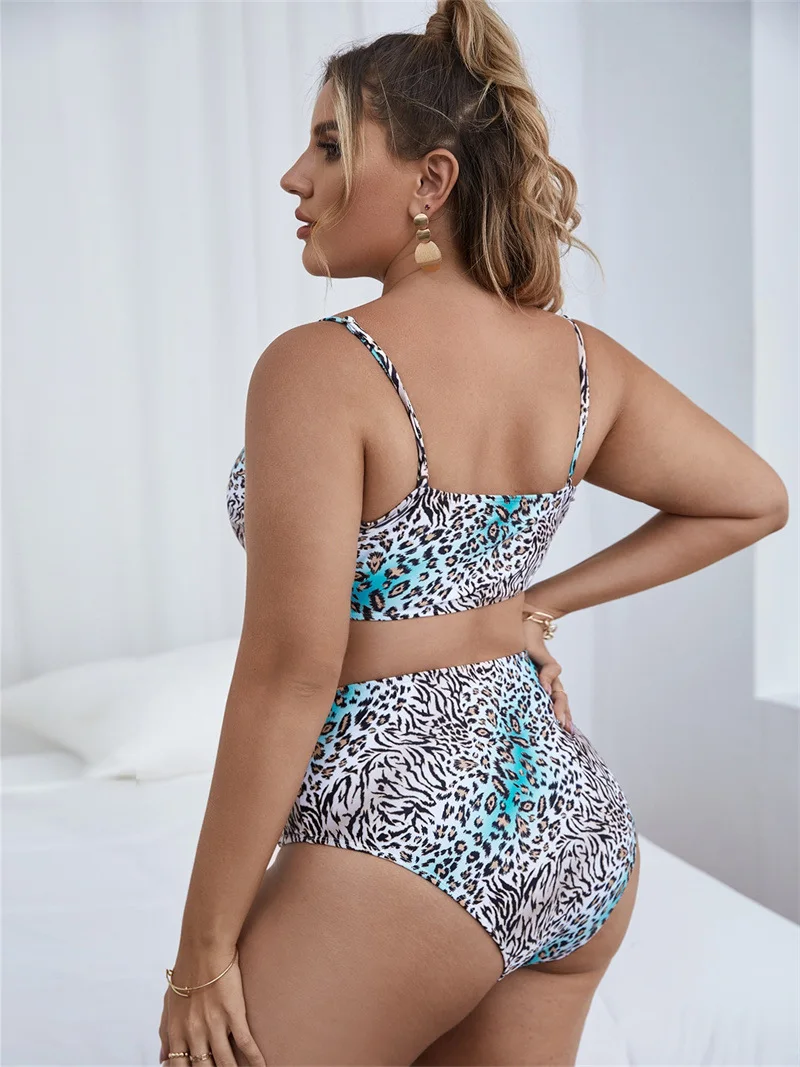 VigoJany 2025 Bikini de cintura alta con estampado de talla grande para mujer, traje de baño push up con tirantes, traje de baño de playa sin espalda, ropa de verano