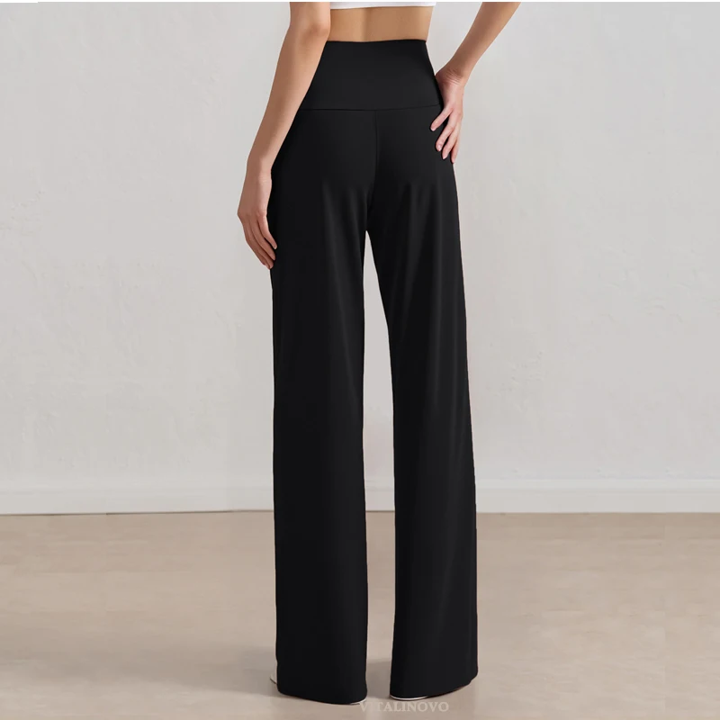 Pantalones de pierna ancha para mujer VITALINOVO, sin bolsillos, cintura alta, elásticos, holgados, tipo chándal, sensación de desnudez, informales, para estar en casa, yoga o entrenamiento, estilo palazzo.