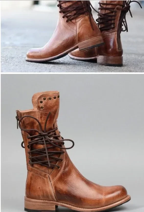 Botas de media caña con remaches para mujer, botines de caballero a la moda, estilo británico, para otoño e invierno, con cordones cruzados, de PU