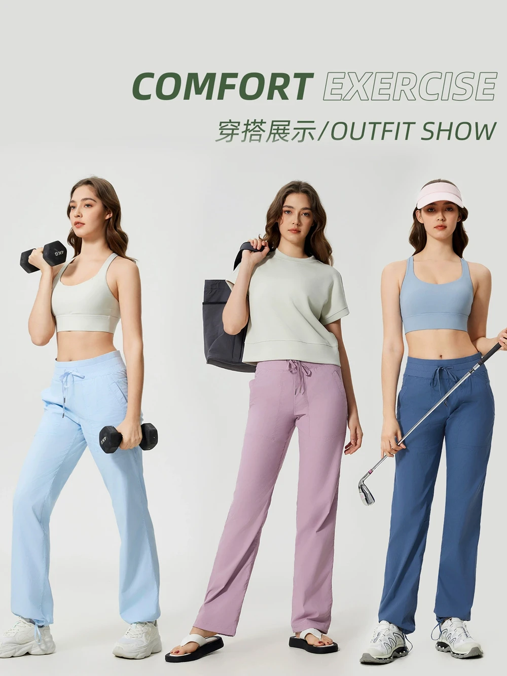 Women Quick Drying Sports Pants Breathable Running Fitness High Waisted Loose Style Wide Leg Casual Yoga Pants Full Length 2025