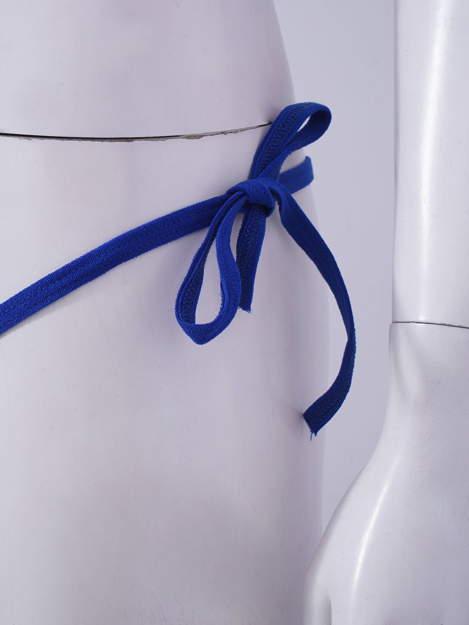 El traje de bikini de dos piezas incluye un top corto con sujetador sin tirantes con cordones y una tanga de cintura baja con cordones.