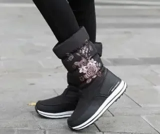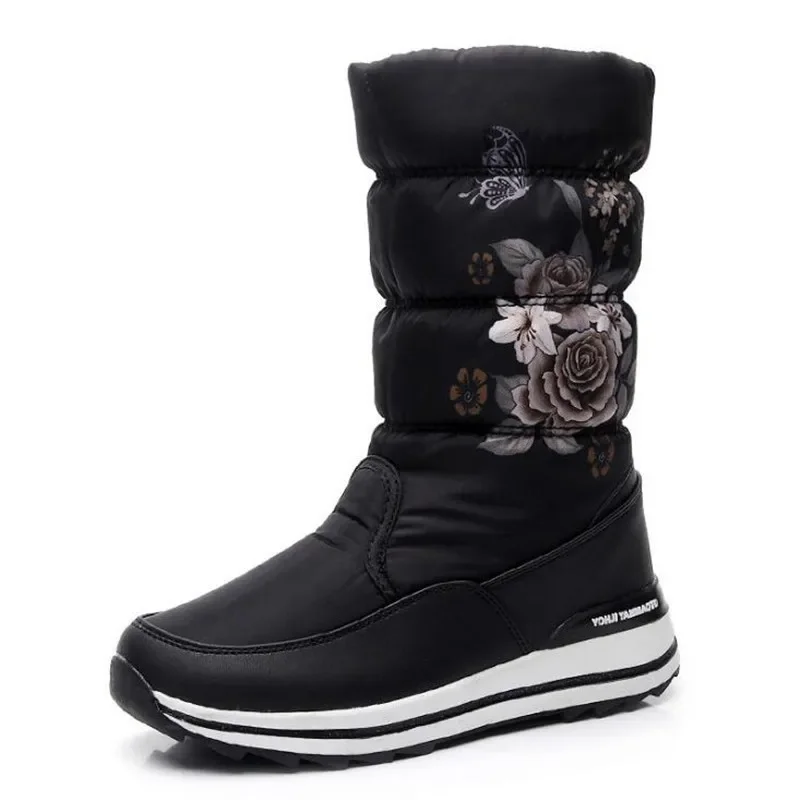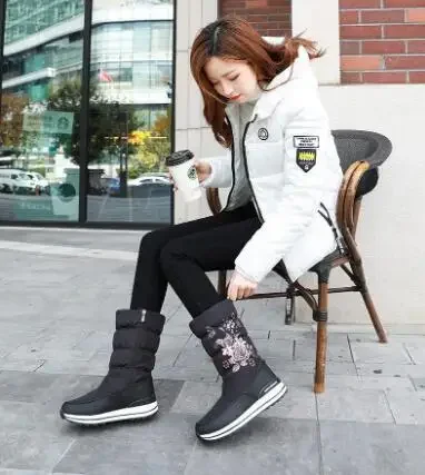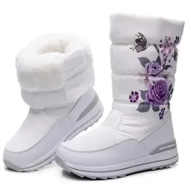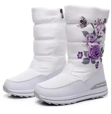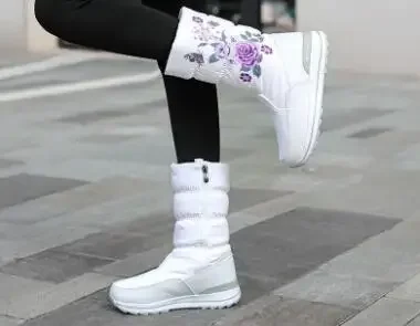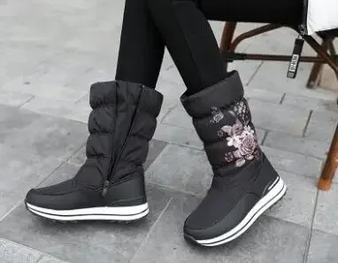 Botas de nieve para mujer, botas de invierno con plataforma, botas gruesas de felpa, impermeables y antideslizantes, zapatos de invierno de moda para mujer, botas cálidas de piel para mujer