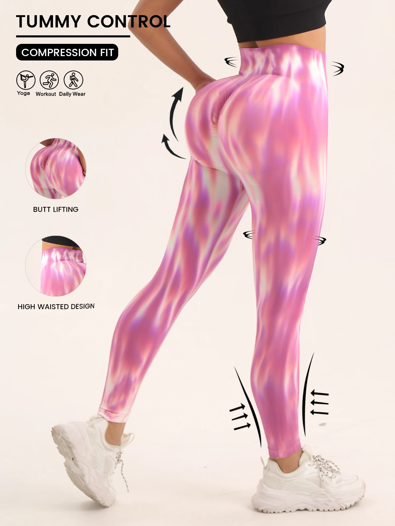 Women's Aurora Tie Dye Leggings High Waisted Butt Lifting Seamless Workout Tight Pants Comfort&Stretchy Fitness Yoga Leggings