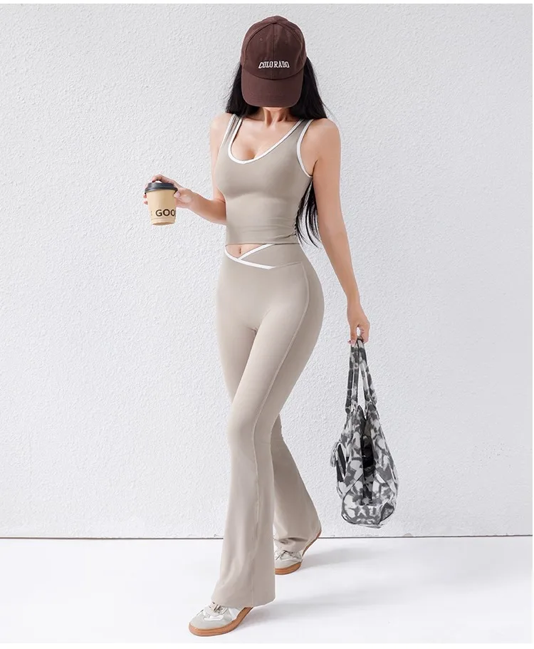Women's CrossFlow Set: Open Back Top & 8" Shorts w/Second-Skin Fit & Run-Ready Yoga Trim