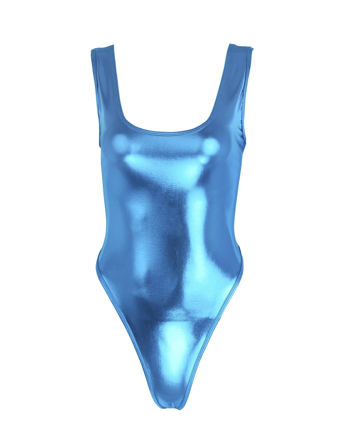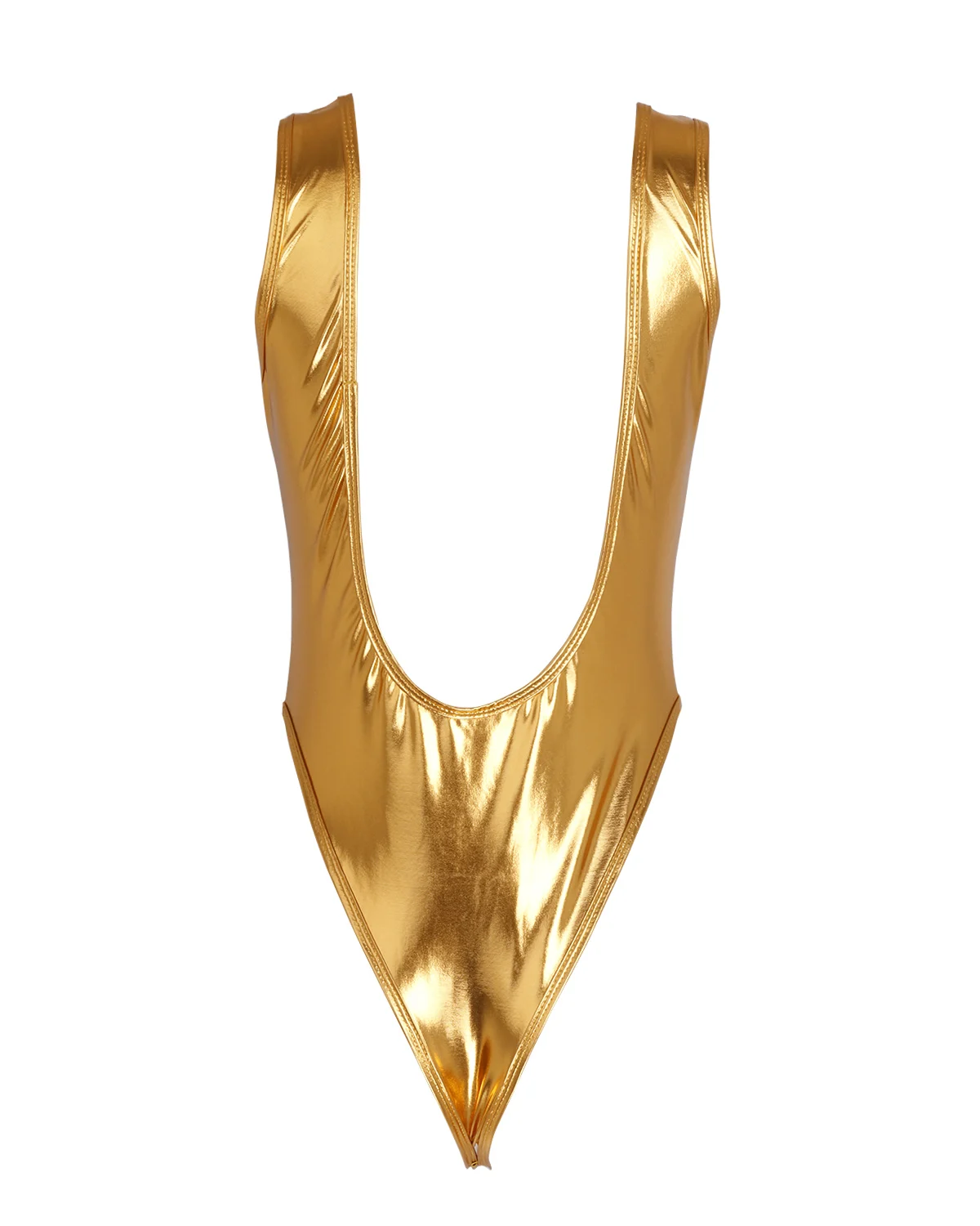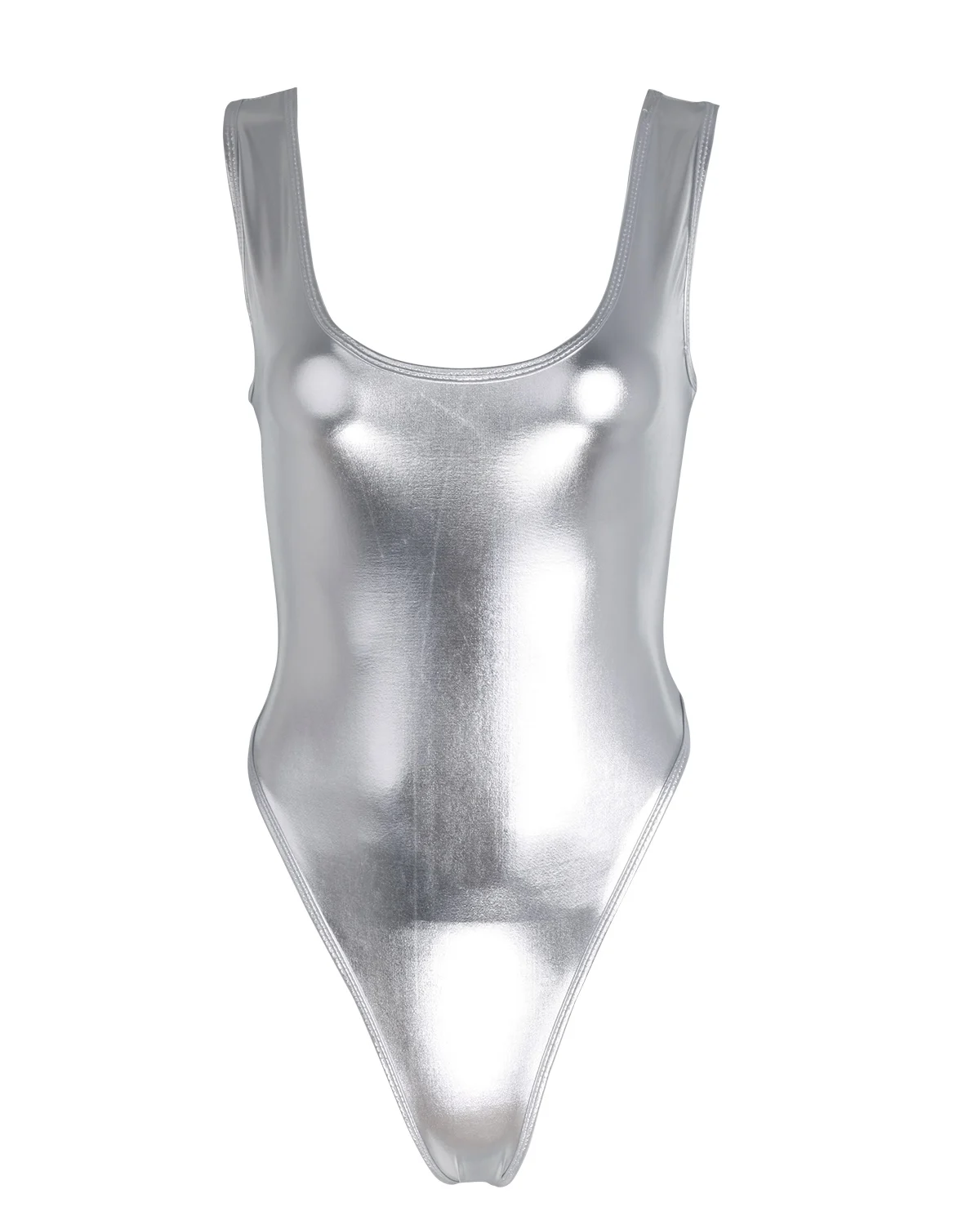 Maillot de tanga de una pieza de charol brillante para mujer sexy.