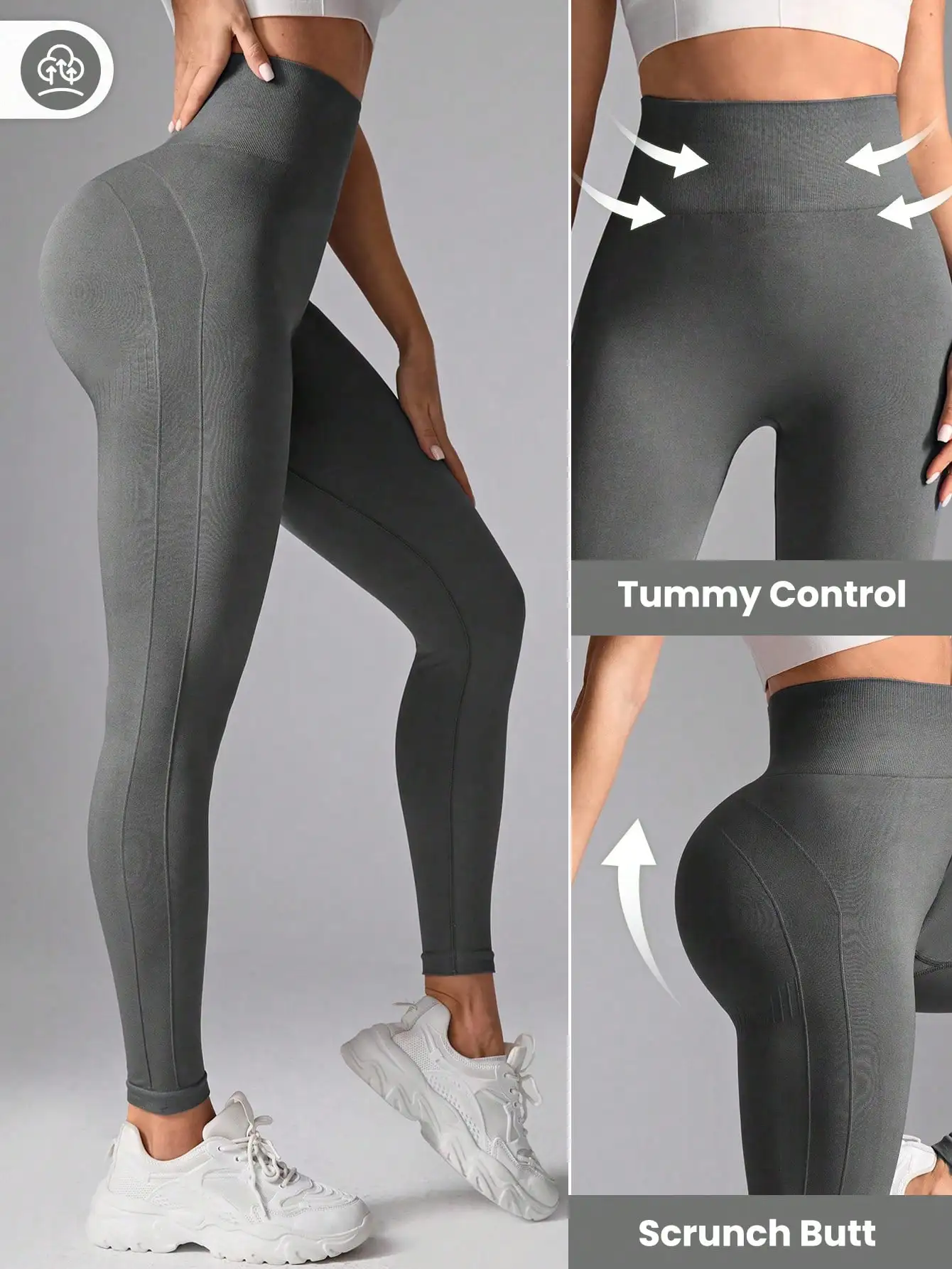 Women's High-Waist Seamless Yoga Leggings, Stretchy Compression Tummy Control Workout Pants, Quick-Dry Athletic Tights with Wide