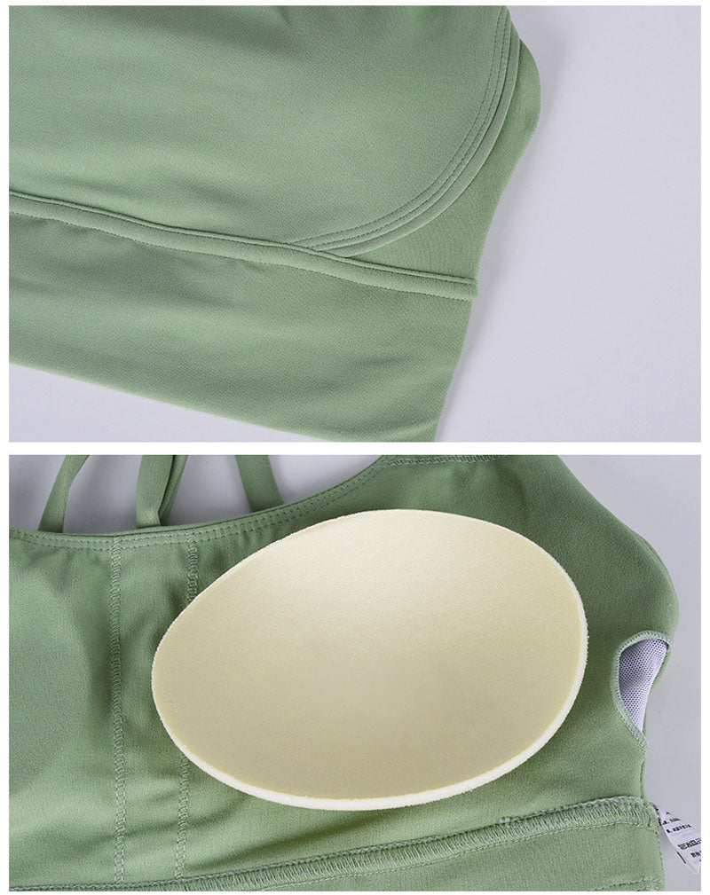 Supportive Sports Bra with Crisscross Back: The sports bra features a secure fit with a stylish crisscross back design, providing both medium support and enhanced breathability. The fixed cups offer shape and coverage, eliminating the need for constant adjustments—ideal for a “supportive crisscross back sports bra for yoga and gym”.