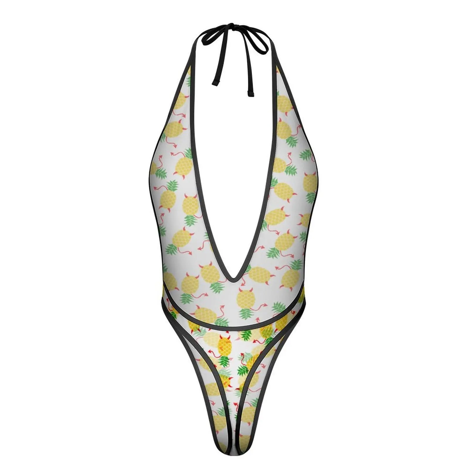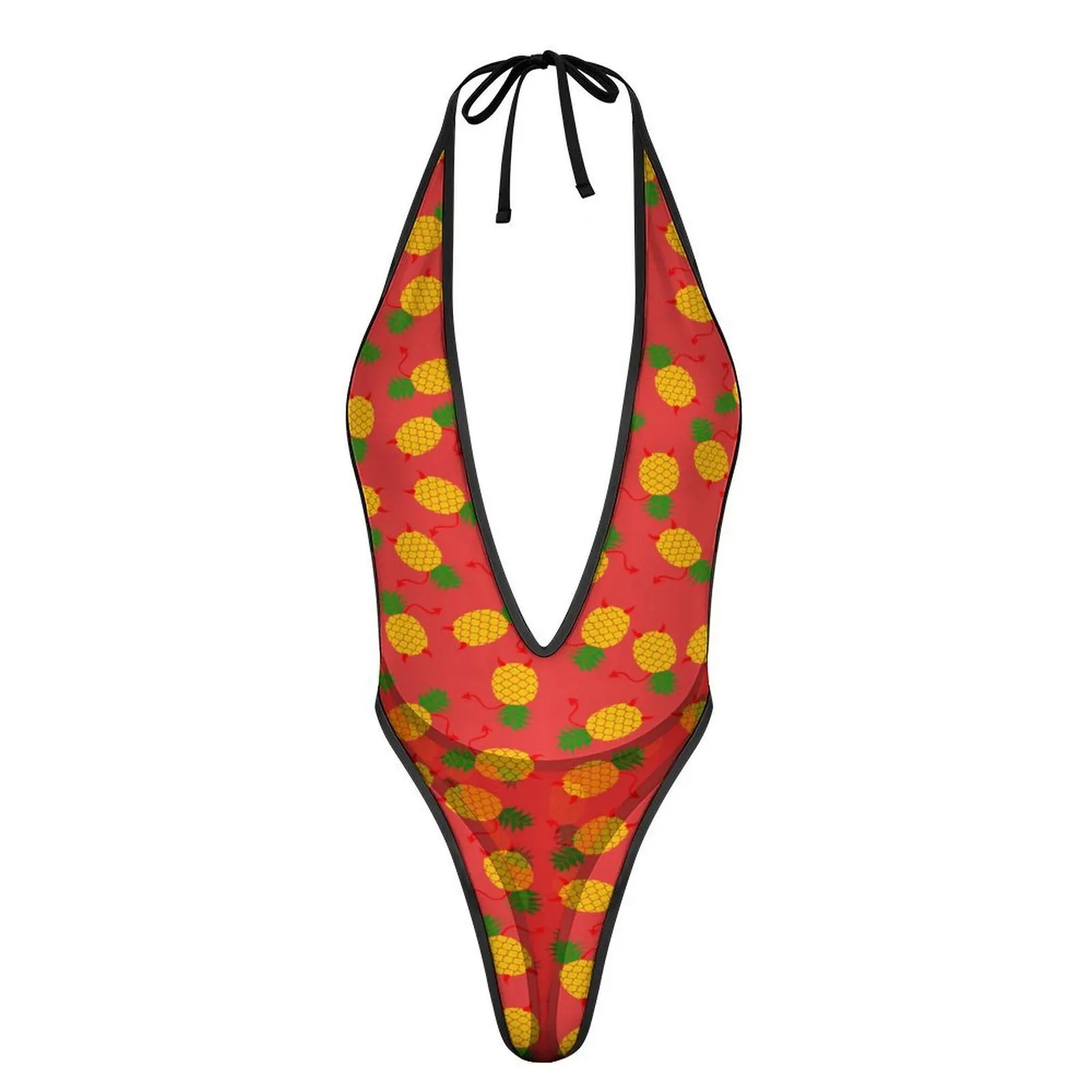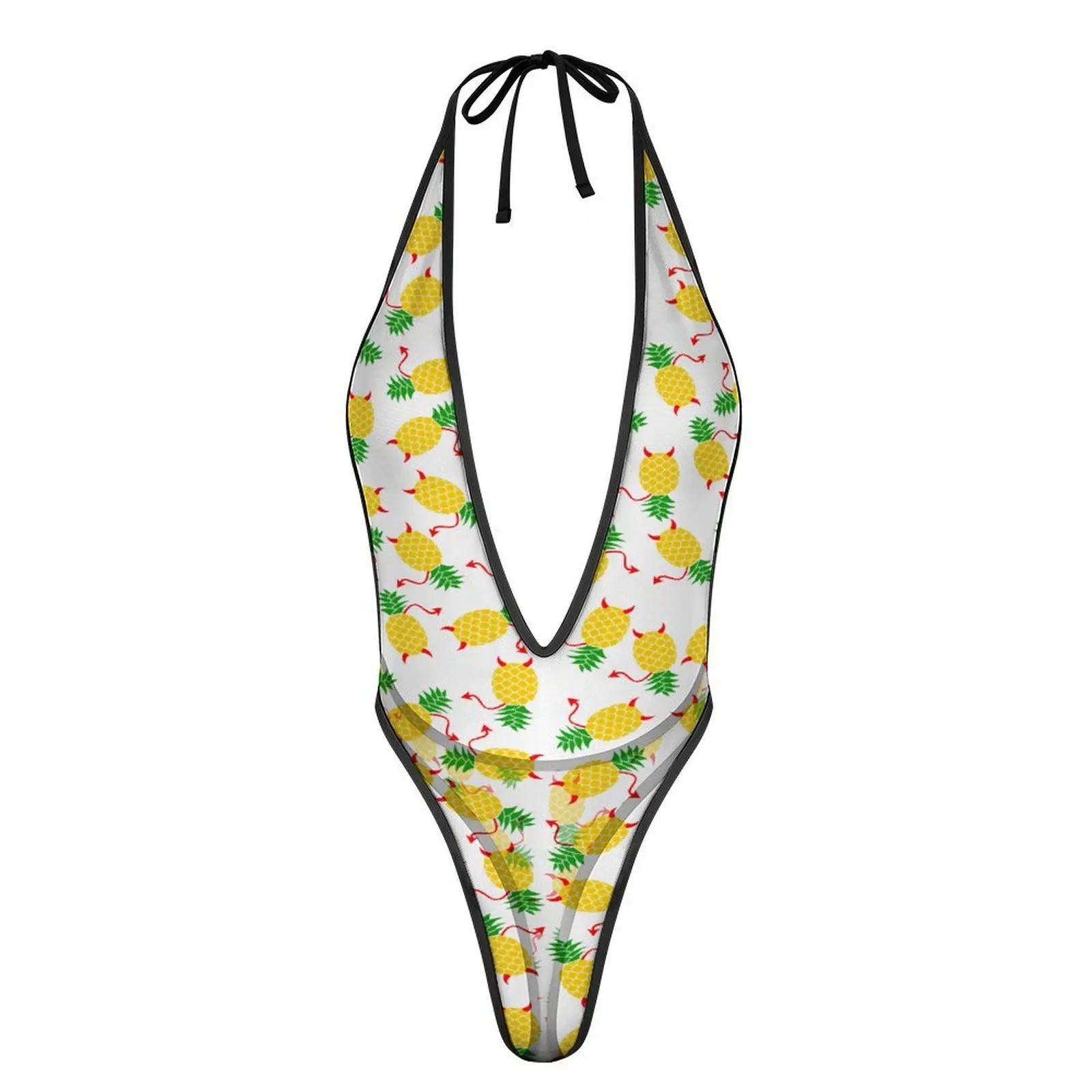 Traje de baño de una pieza para mujer, monokini con escote en V profundo, espalda descubierta y estampado de piña al revés, traje de baño sexy