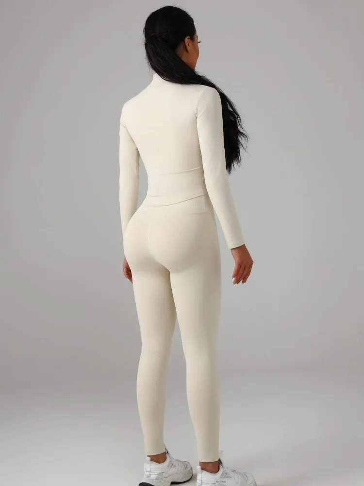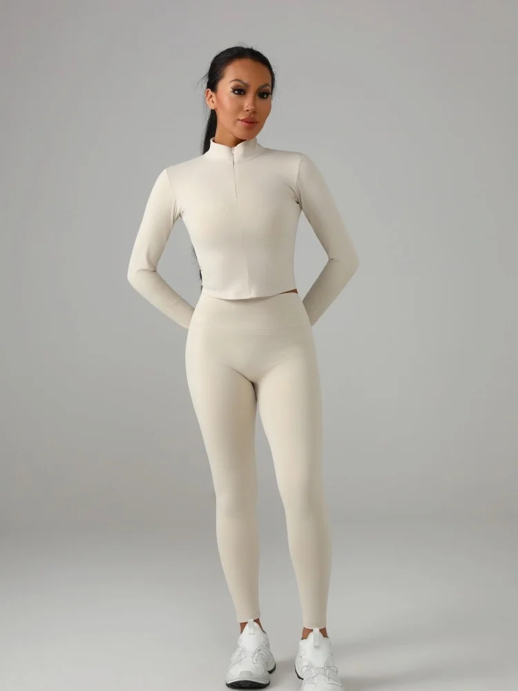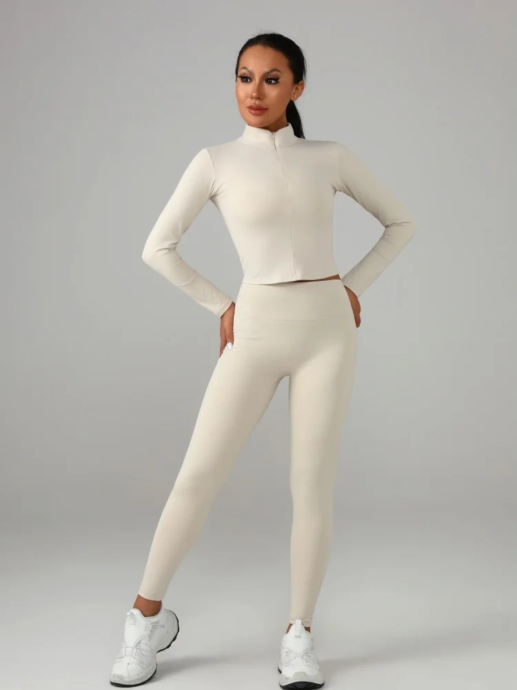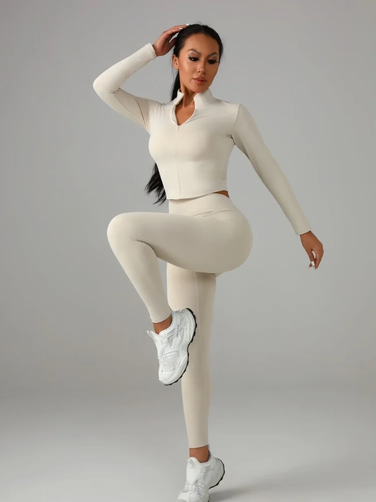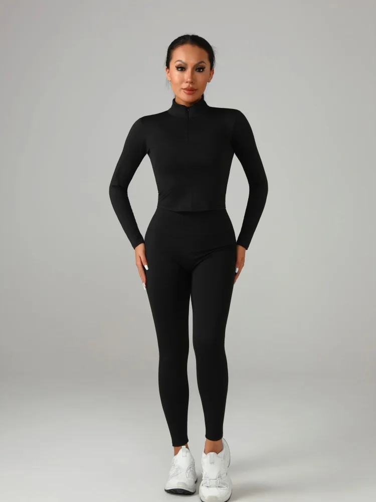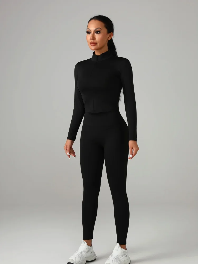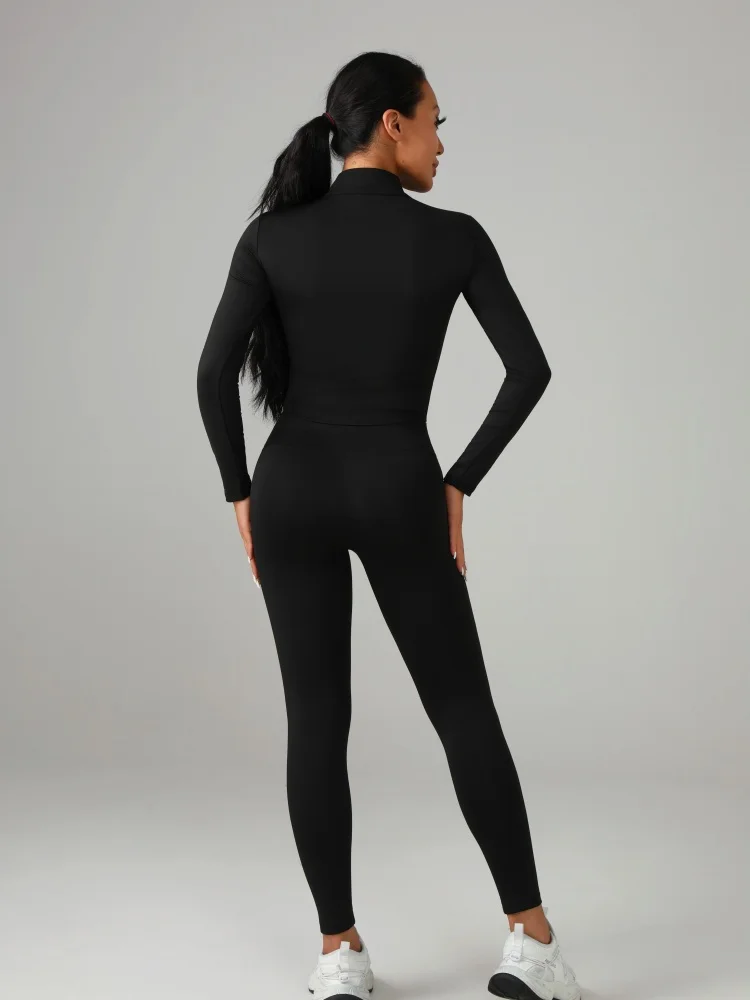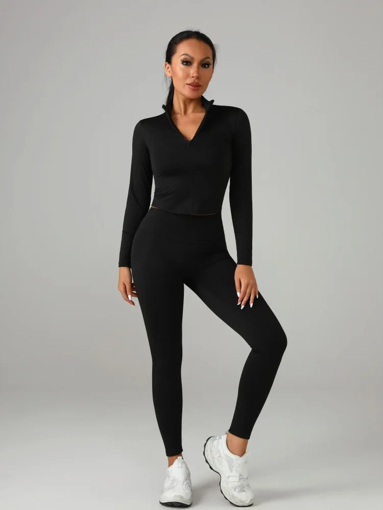 Conjunto deportivo de color liso para mujer: camiseta de manga larga y pantalón de yoga, chándal transpirable de secado rápido.