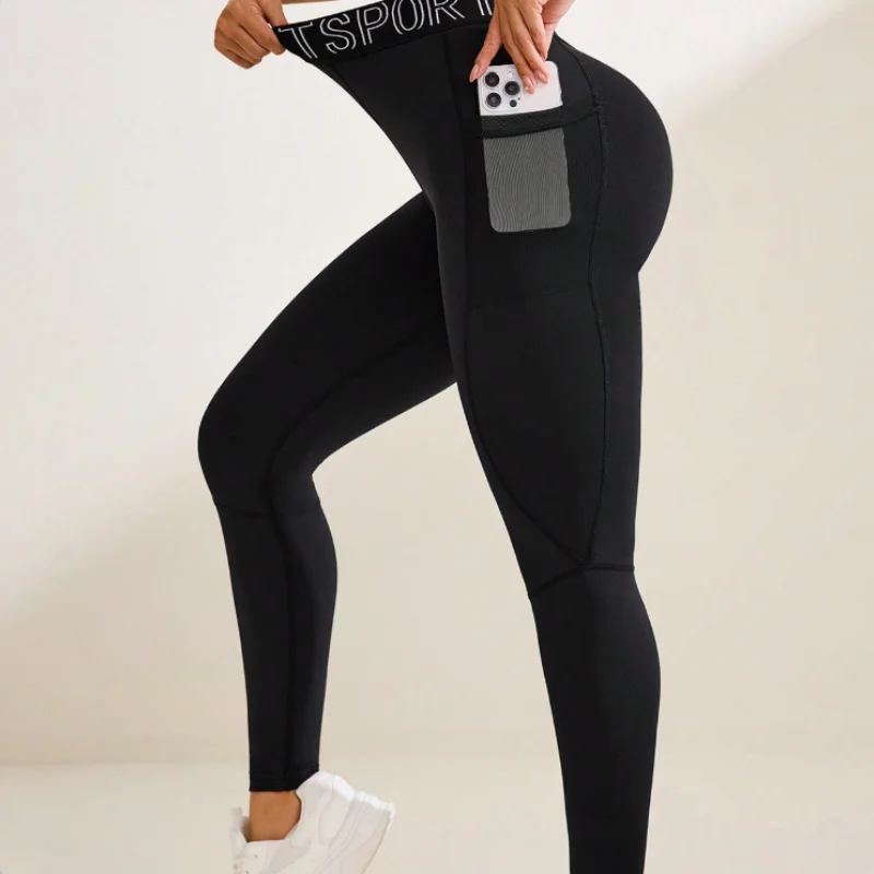 Leggings deportivos para mujer, súper suaves, con letras en la cintura, opacos, para fitness, correr, yoga, ejercicio, push-up, gimnasio.