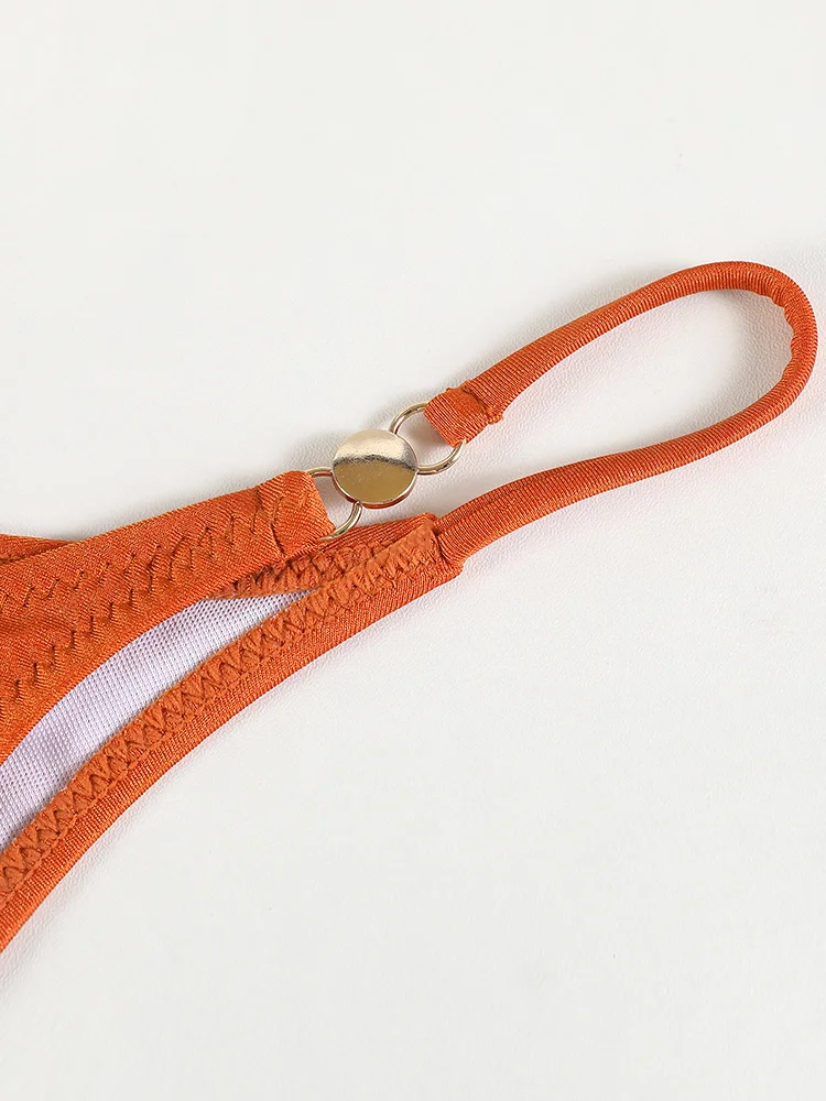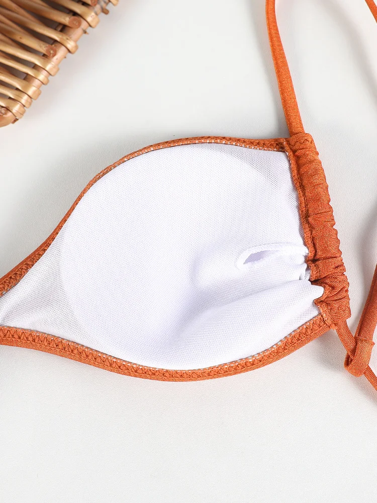 Traje de baño para mujer, bikini sexy de un solo color con lazos, tangas, trajes de baño de color liso, ropa de playa, bikini brasileño de verano 2024