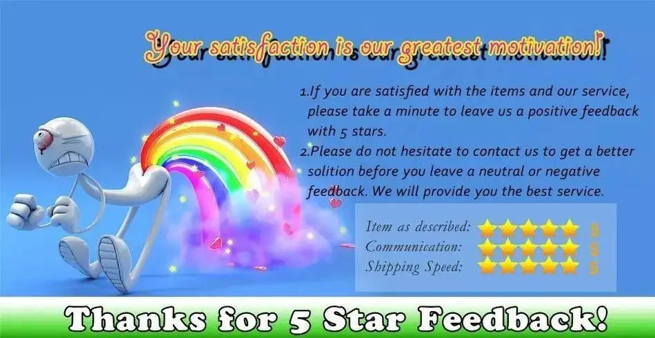 Dado que sus comentarios son muy importantes para el desarrollo de nuestro negocio, le invitamos sinceramente a dejarnos una opinión positiva si está satisfecho con nuestro producto y servicio. Solo le llevará un minuto. ¡Gracias!