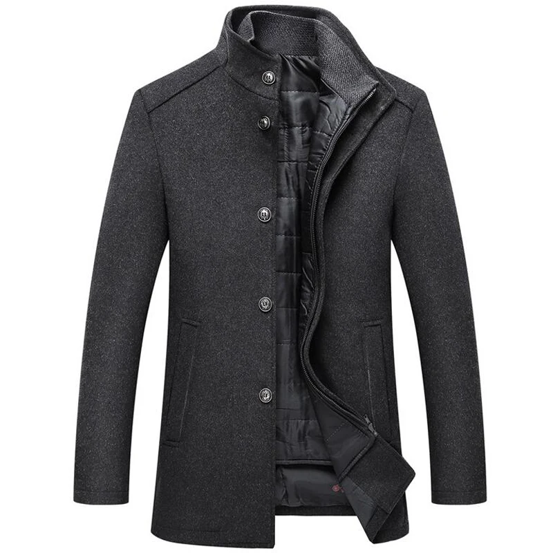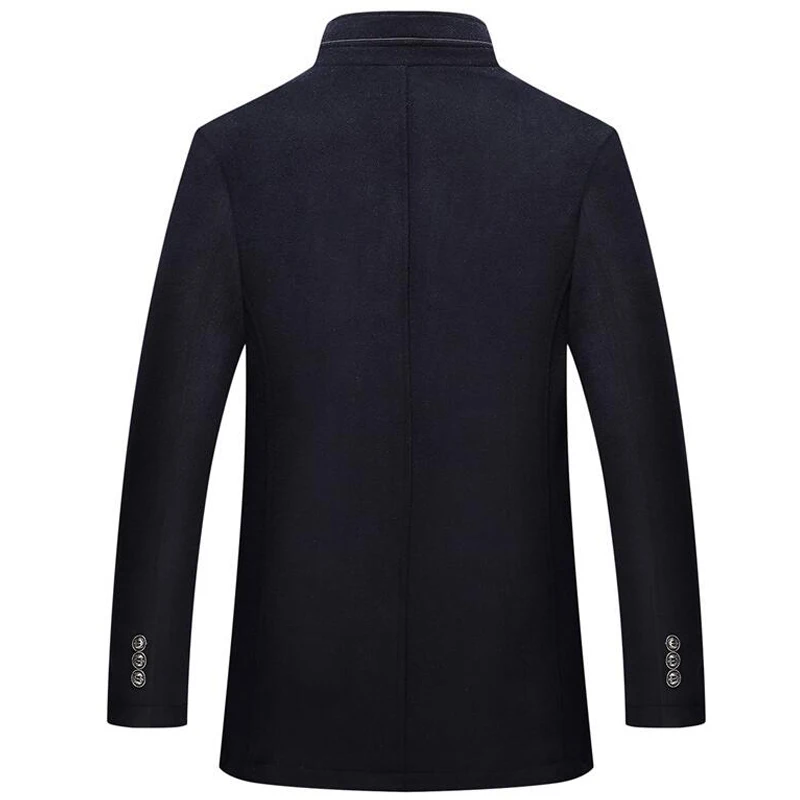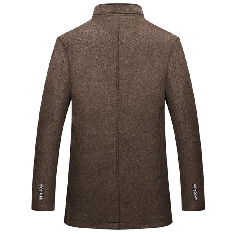 Woolen Coat Men Winter Windbreaker Long Thick Wool Jackets abrigo hombre Man Stand Collar Single Breasted With Vest Woolen Coats
