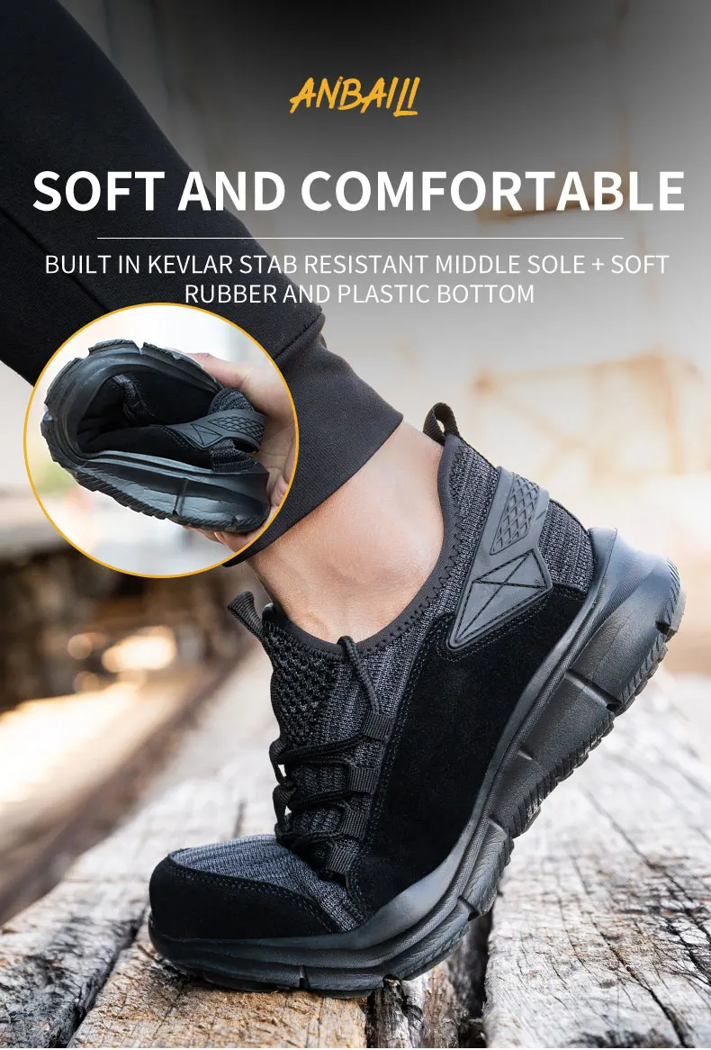 Zapatillas de trabajo para hombre, calzado de seguridad, zapatos de trabajo con puntera de acero para la construcción, botas de seguridad ligeras, zapatillas de trabajo antiperforación de Kevlar.