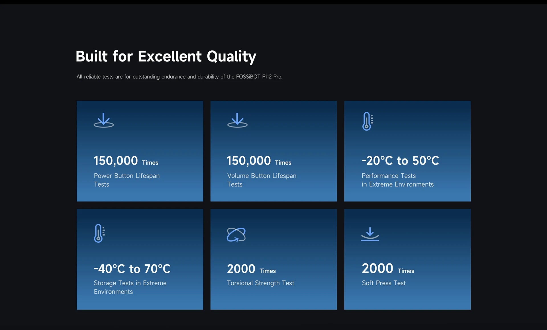 Todas las pruebas fiables demuestran la excepcional resistencia y durabilidad del FOSSiBOT F112 Pro.