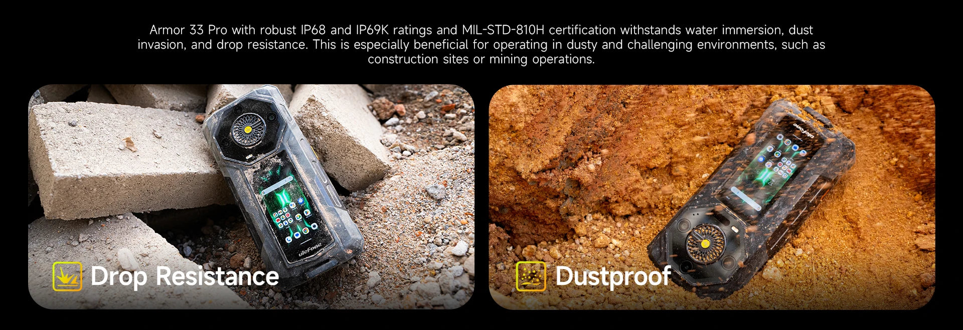 【Estreno mundial】Ulefone Armor 33 Pro 5G Teléfono resistente con batería de 25500 mAh, 512 GB de ROM, pantalla trasera de 6,59" y 3,4" a 120 Hz, NFC y Android.