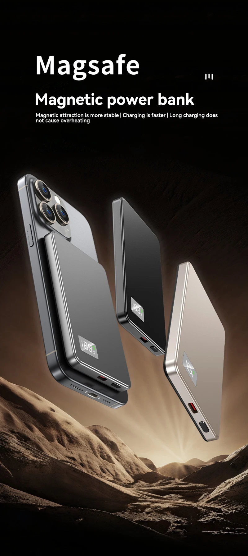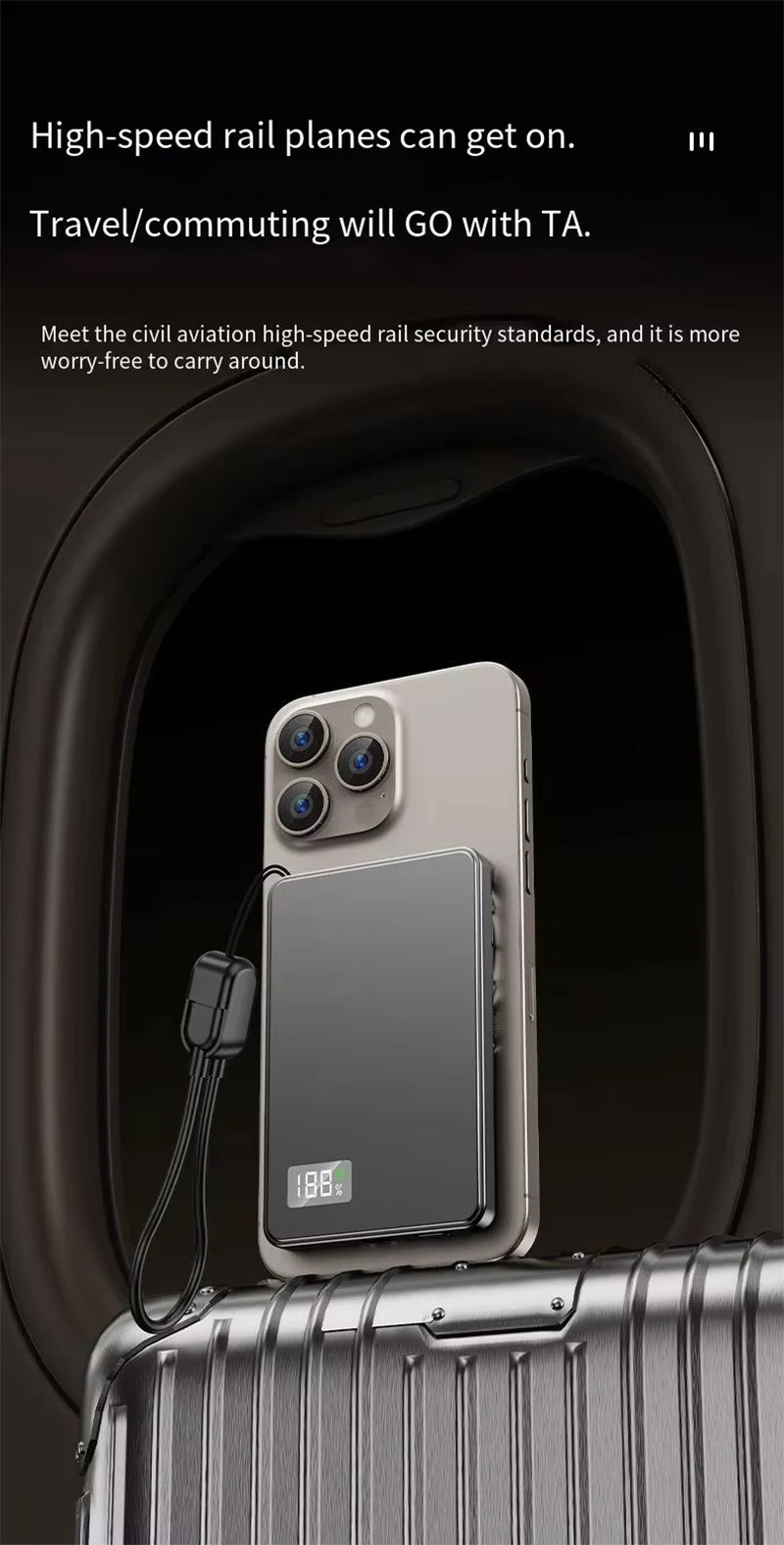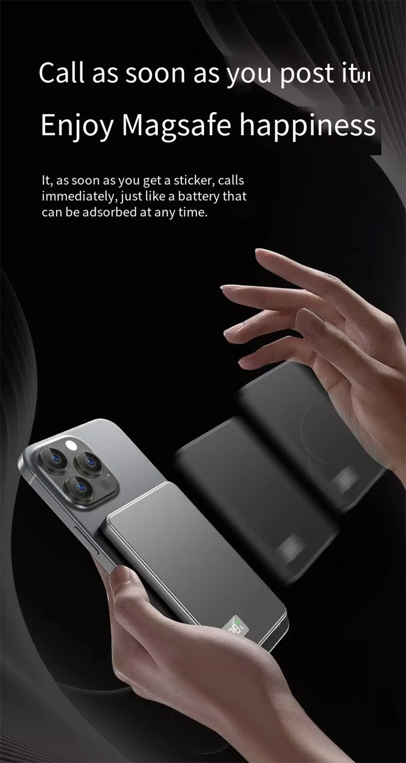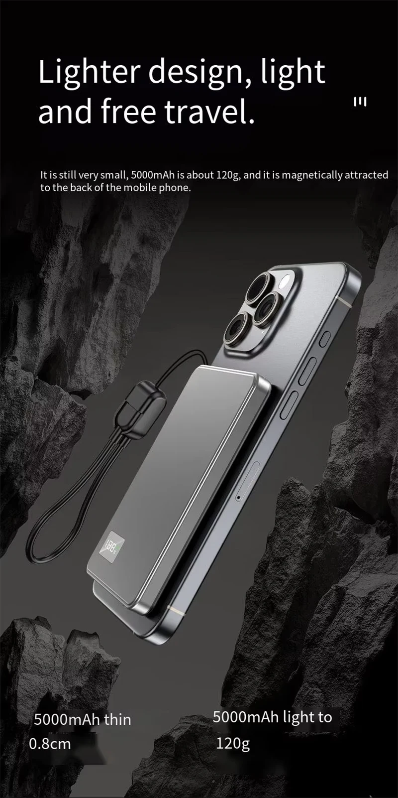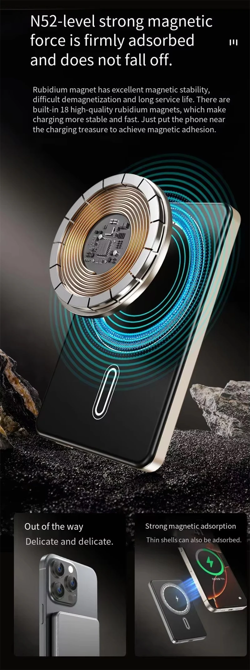 Banco de energía inalámbrico magnético Magsafe ultradelgado de 5000/0000 mAh. Compatibilidad USB universal, múltiples formatos de carga, cable de 3,7 mm.