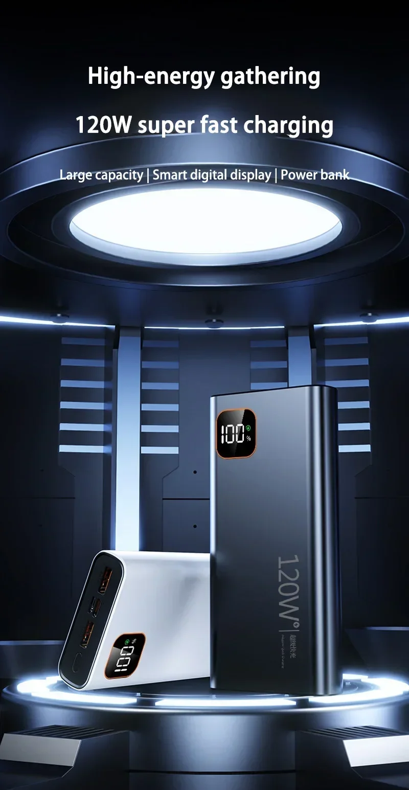 Batería externa portátil Xiaomi de 500.000 mAh y 120 W con carga ultrarrápida y gran capacidad, con pantalla digital para iPhone y Samsung.